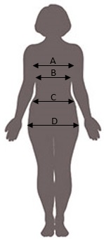 | B | Obvod pod prsiami | 69 - 72 | 73 - 76 | 77 - 80 | 81 - 84 | 85 - 88 | 89 - 92 | 93 - 96 | 97 - 100 | 101 - 104 |