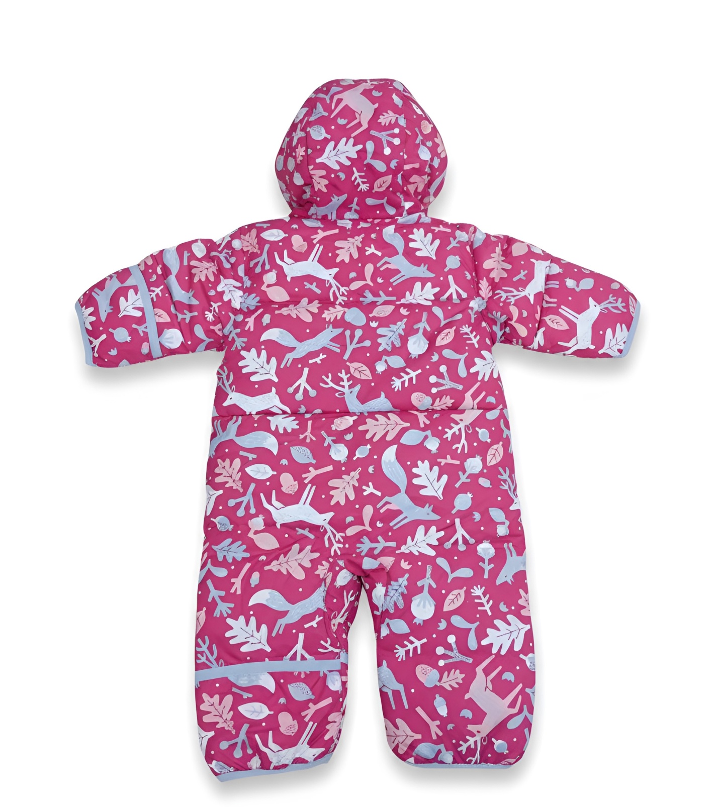 Povrchový materiál je vodoodpudivý (water resistant), takže spoľahlivo chráni pred snehom aj ľahkým dažďom. Vnútro je príjemne mäkké a hrejivé, ideálne pre zimné prechádzky, pobyt v kočíku či prvé vonkajšie dobrodružstvo. Zips je vedený asymetricky po celej dĺžke kombinézy, čo výrazne uľahčuje obliekanie aj vyzliekanie.