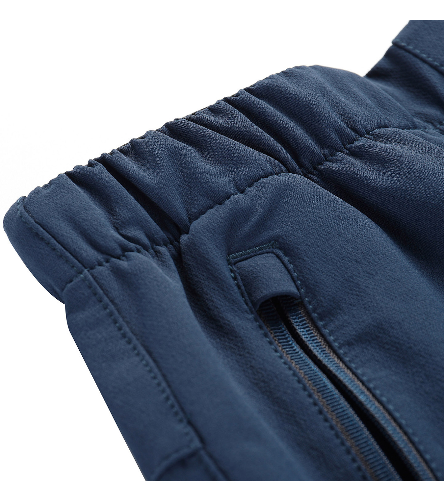 Detské softshellové nohavice sú navrhnuté tak, aby deťom poskytli maximálne pohodlie a ochranu pri pohybe v prírode aj v meste. Sú ušité z funkčného materiálu zloženého z nylonu, polyesteru a elastanu, ktorý je vodoodpudivý, paropriepustný, vetruodolný a zároveň príjemne hrejivý. Vďaka úprave DWR zostávajú nohavice odolné voči vlhkosti a ľahko sa udržujú. Strih je polopriliehavý, s prakticky zvýšeným pásom na zadnom diele, ktorý je všitý do gumy a doplnený sťahovacou šnúrkou pre perfektné prispôsobenie.