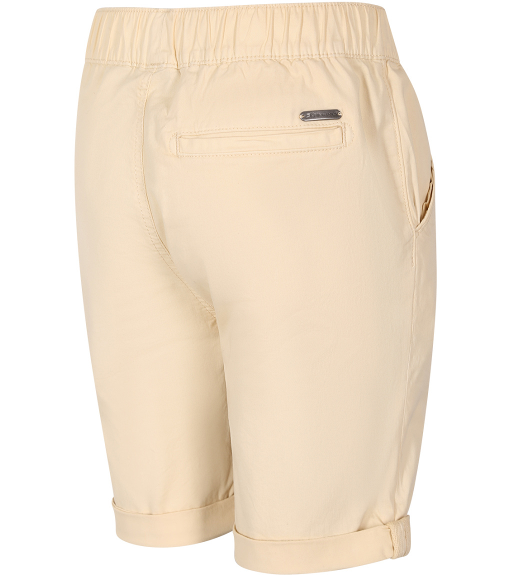 Bavlnené chlapčenské kraťasy sú skvelou voľbou pre pohodlie a štýl počas letných dní. Pružný materiál zaisťuje voľnosť pohybu, zatiaľ čo polopriliehavý strih ponúka ideálnu kombináciu komfortu a flexibility. Pás je nariasený do gumy a vybavený sťahovacou šnúrkou, čo umožňuje ľahké prispôsobenie. Kraťasy majú vyhrnutý lem na nohaviciach pre moderný vzhľad, tri praktické vrecká a nášivku na zadnom diele, ktorá dodáva štýlový detail. Perfektná voľba pre ihriská, prechádzky či letné dobrodružstvo.