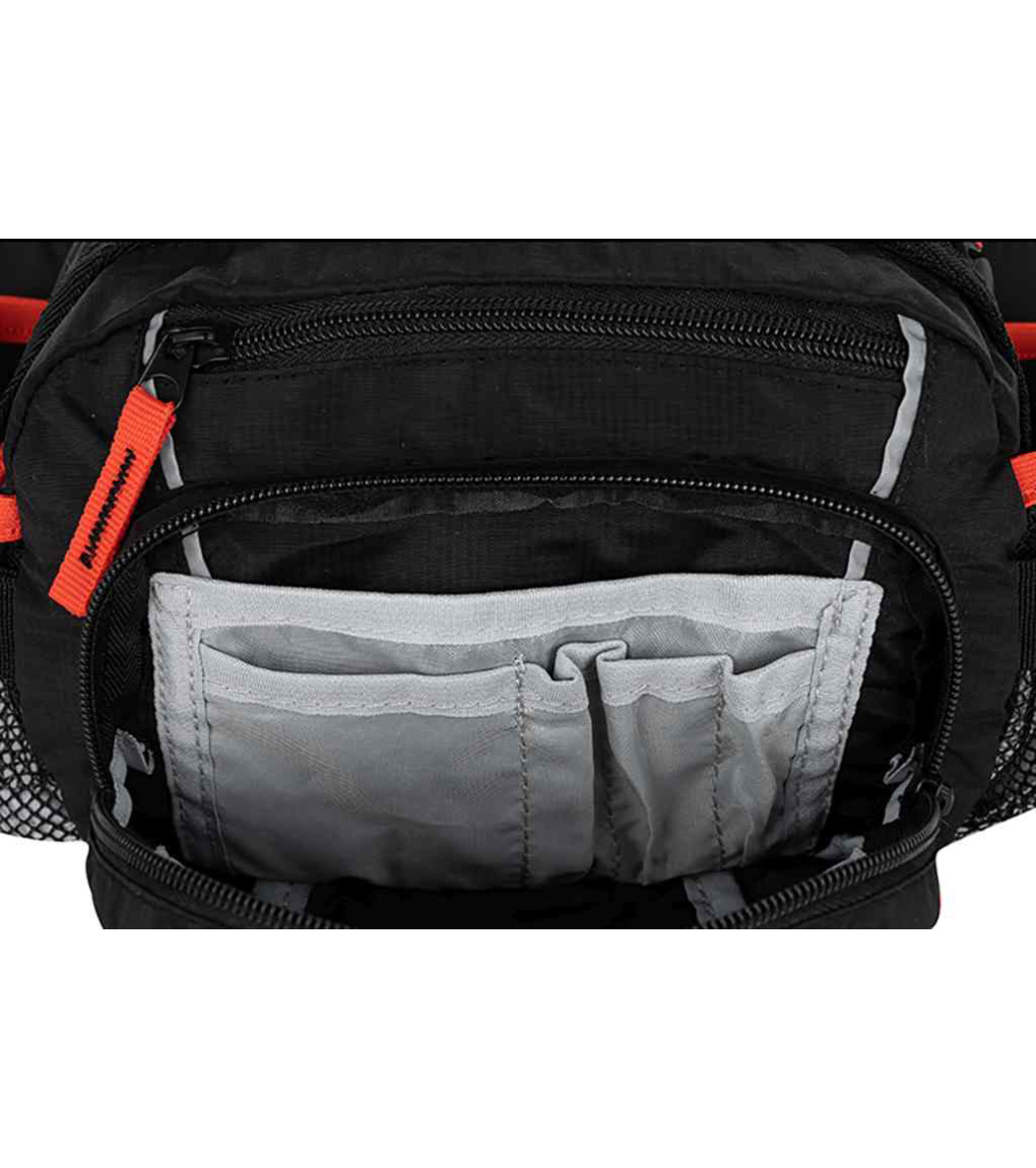 Turistická taška na obličky s predným vreckom na zips a množstvom príslušenstva. Vhodná na každodenné nosenie po meste aj na výpravy do prírody. Chrbát je polstrovaný, má bedrový pás a reflexné prvky. Milovníci hudby ocenia konektor na slúchadlá.