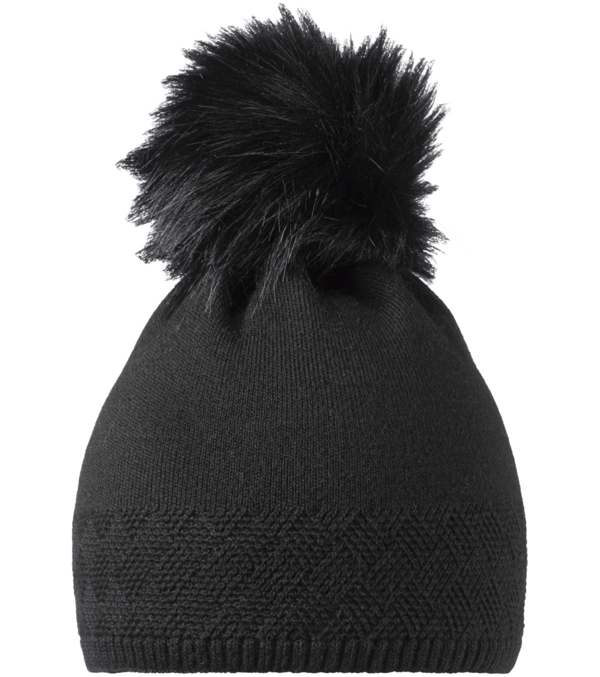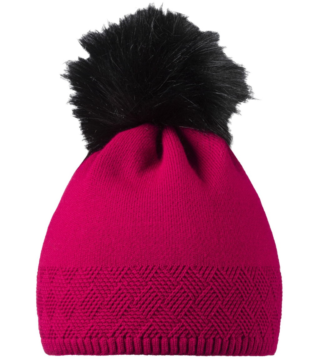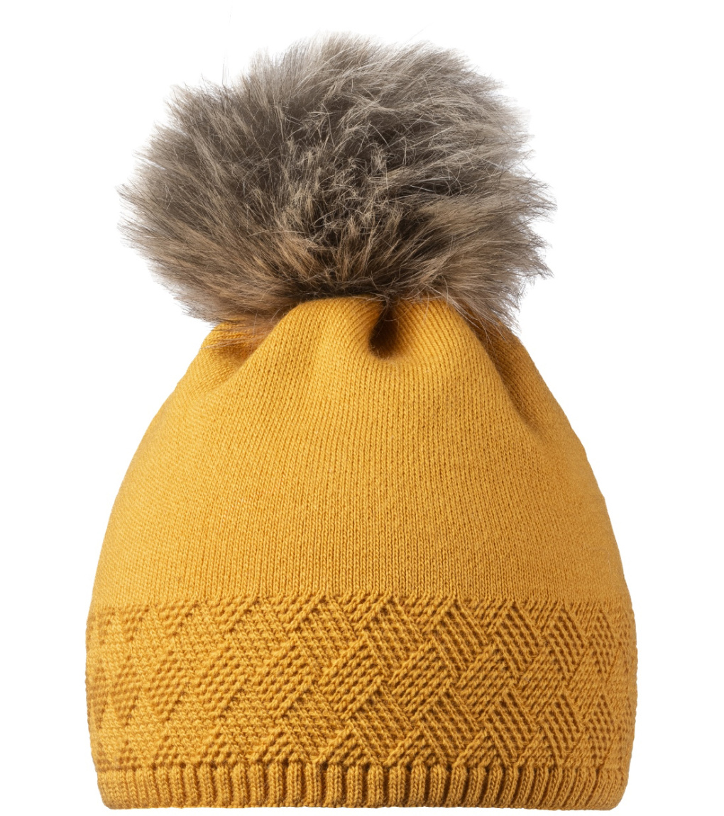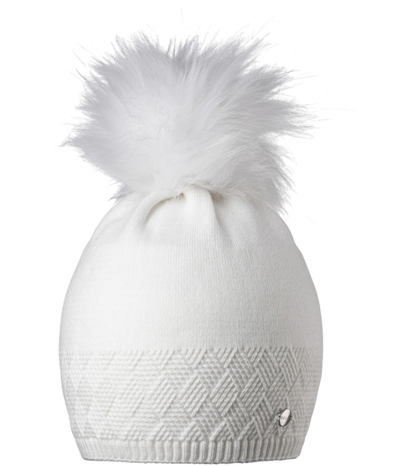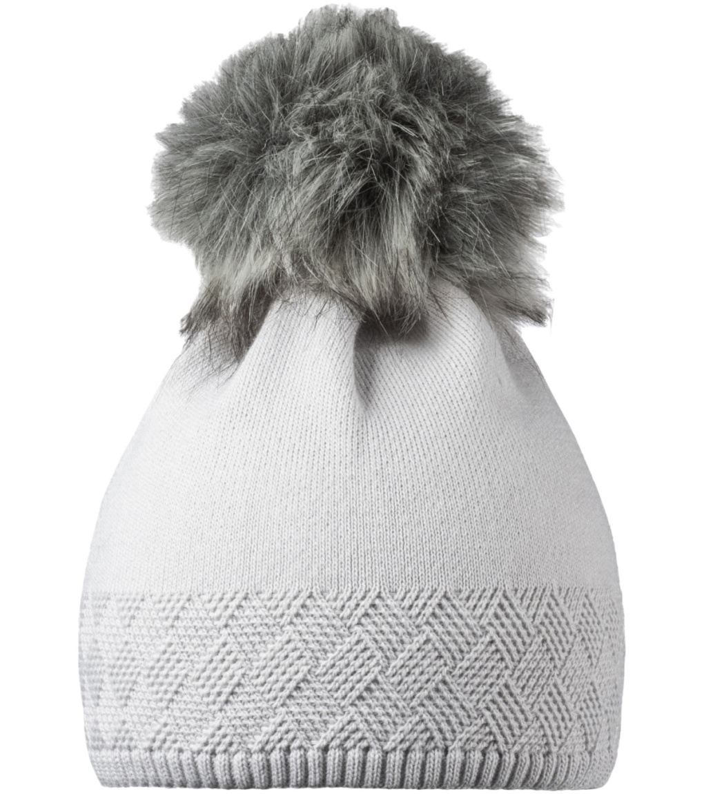 Elegantná dámska zimná čiapka s brmbolcom z umelej kožušiny s jemným plastickým vzorom.