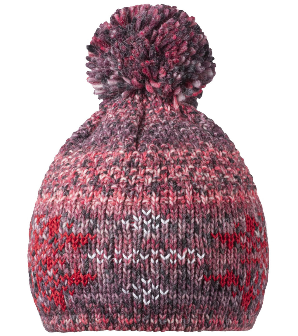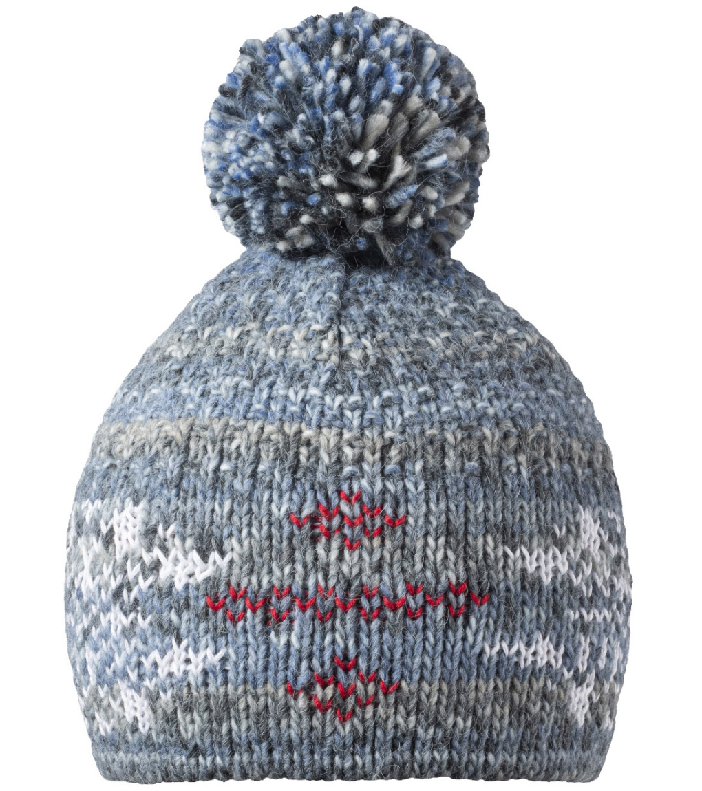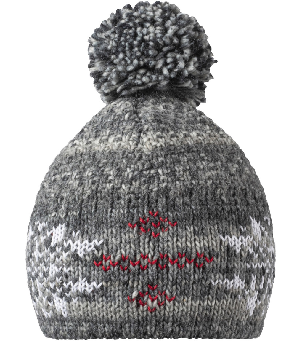 Hrejivá zimná čiapka s vnútornou flísovou čelenkou v módnych melírovaných farbách so vzorkou snehových vločiek as prímesou vlny.