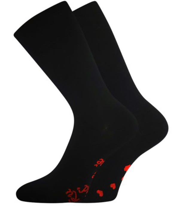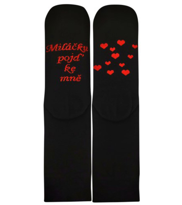 Valentínske ponožky pre ženy aj mužov potešia originálnym odkazom na chodidle, ktorý zostane malým tajomstvom len pre vášho miláčika. Nadčasový čierny design dopĺňa pohodlný, jemný lem, ktorý netlačí ani neškrtí. Retiazkovaná špica zaisťuje maximálny komfort pri nosení – bez otlakov a pľuzgierov.
