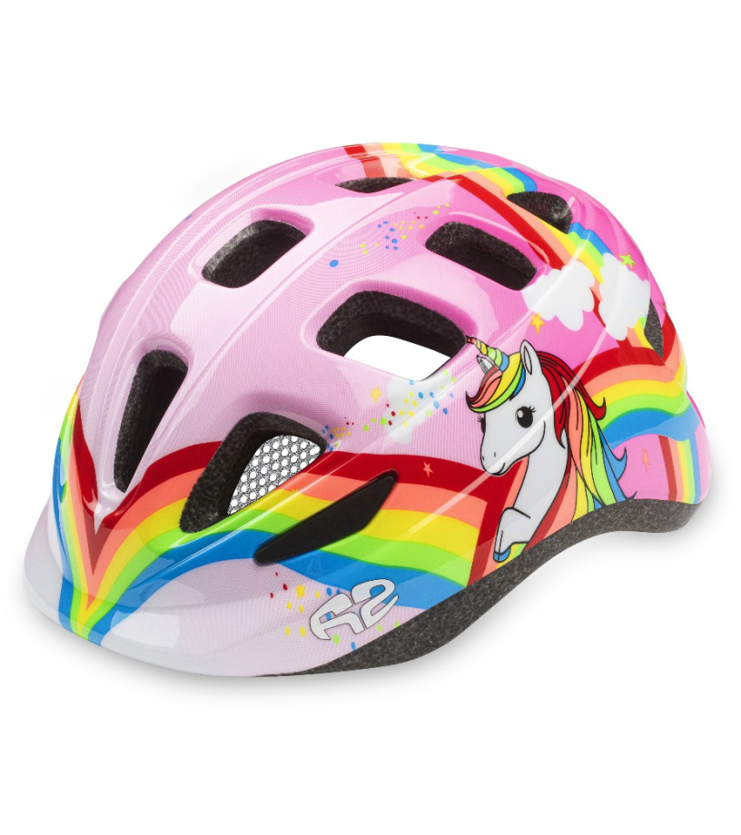 R2 BUNNY - pohodlná a především bezpečná dětská helma s pěkným designem. Vybavena síťkou proti hmyzu, stabilním upínáním a štítkem, který je součástí tvaru helmy.