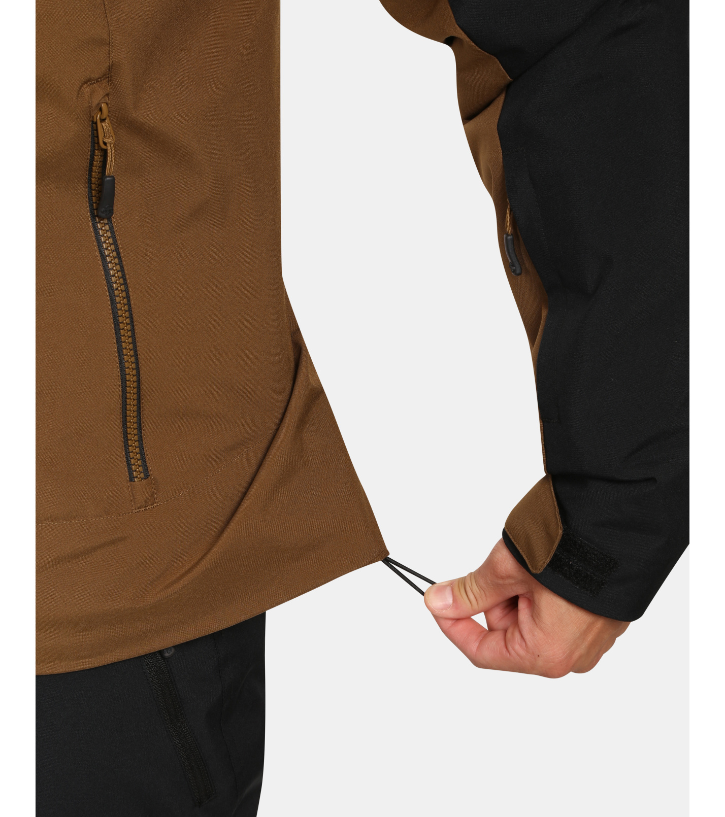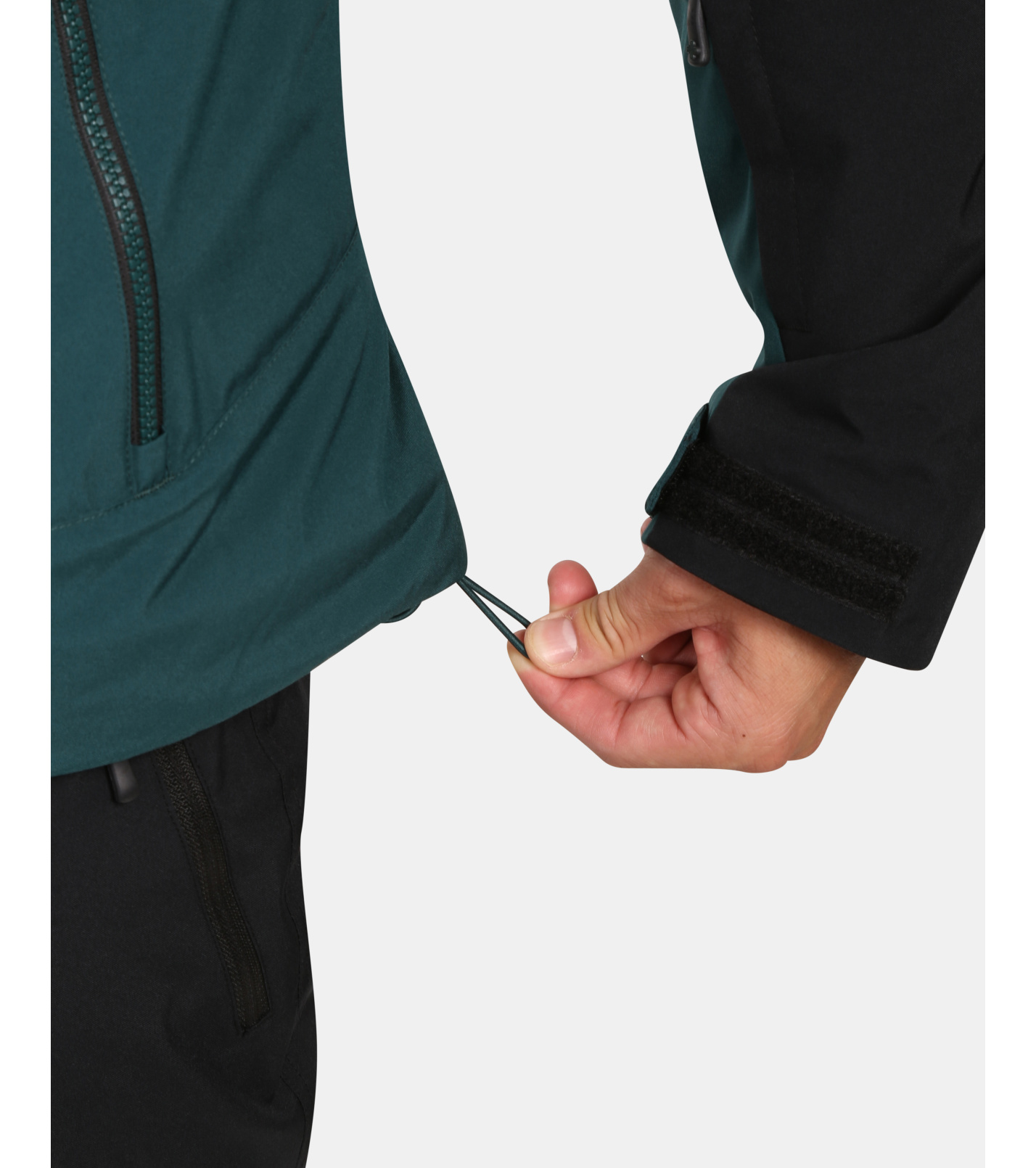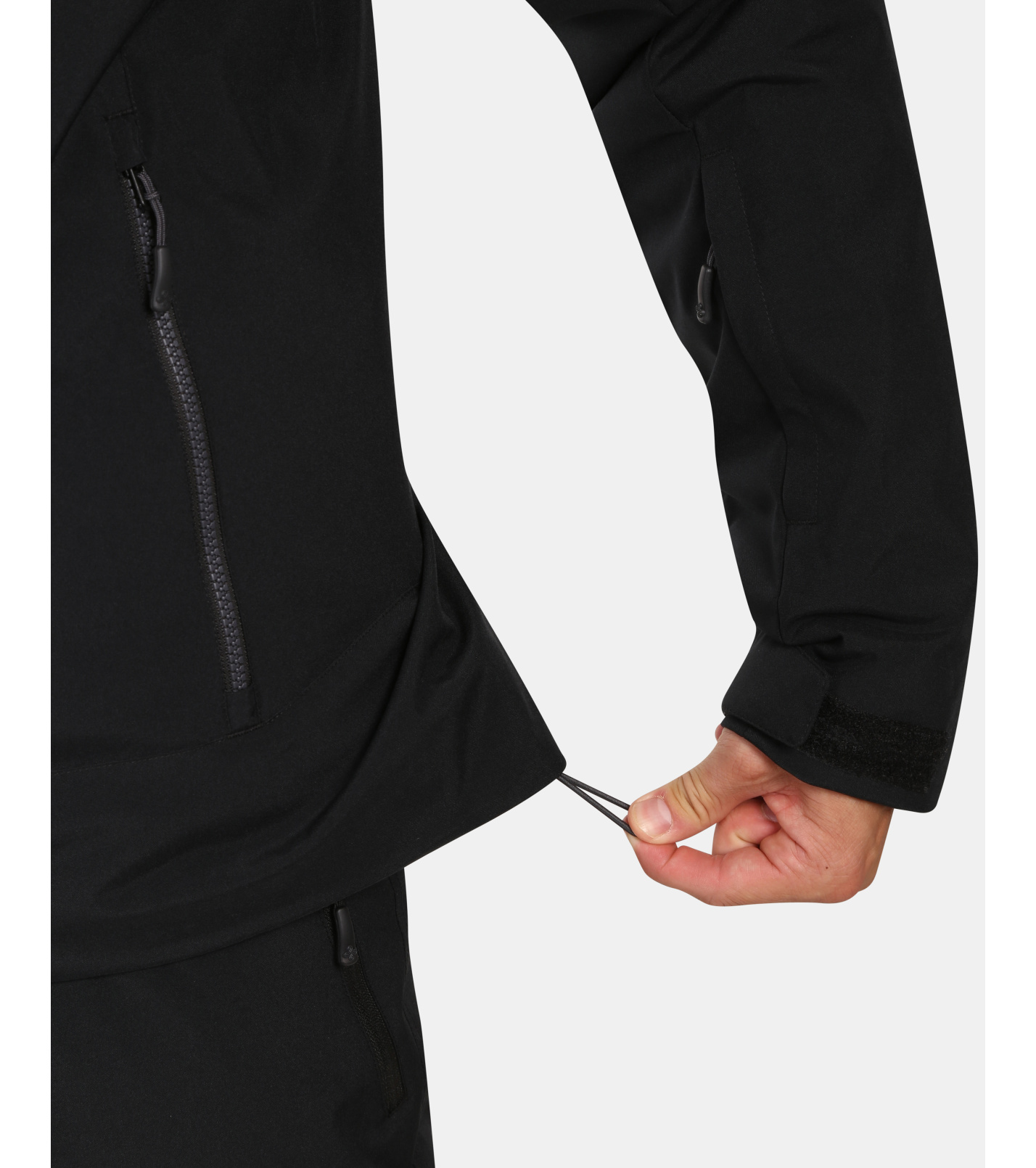 Praktické vybavenie zahŕňa tri vonkajšie vrecká, vrecko na skipas a vnútorné vrecko na cennosti, rovnako ako protisnehový golier vo vnútri bundy. Spodný lem je možné ľahko stiahnuť gumičkou a rukávmi upraviť pomocou suchého zipsu. Plne nastaviteľná kapucňa sa dá prispôsobiť podľa potreby vďaka sťahovacej gumičke.