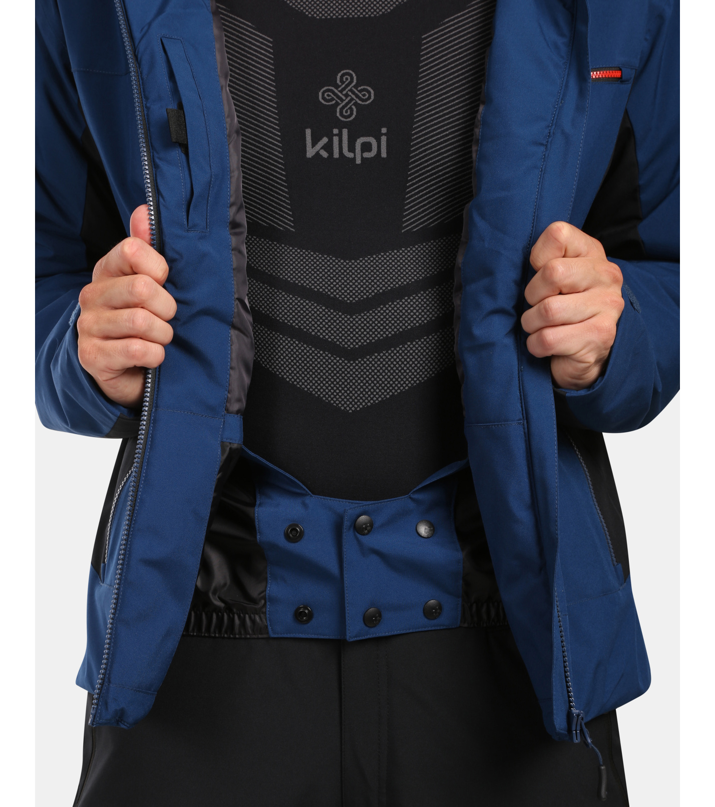 Všitá ochranná snehová manžeta, ktorá zabraňuje prenikaniu snehu pod odev. V spodnej časti je našitá elastická protišmyková guma.