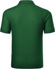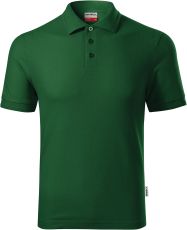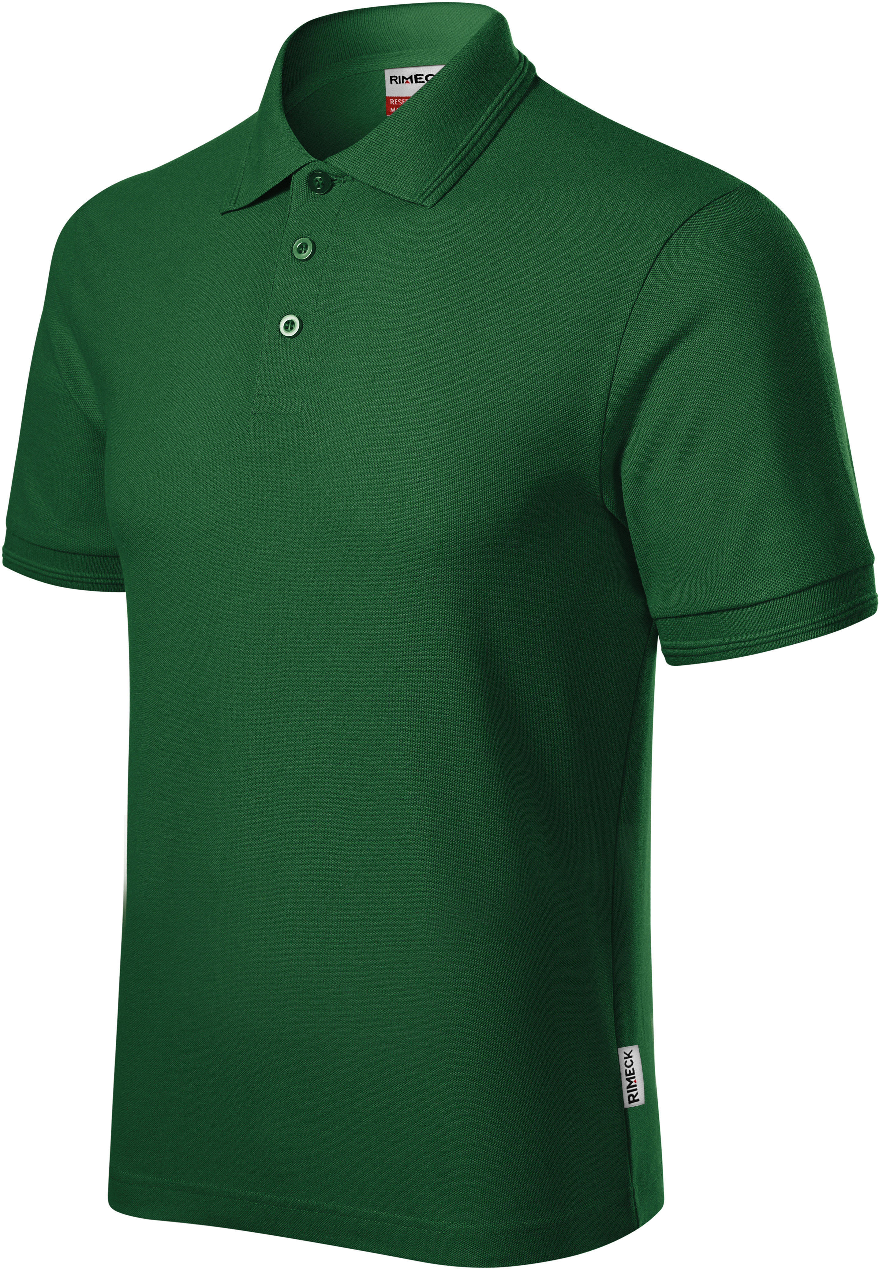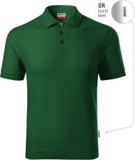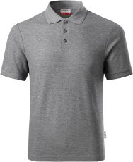 Panské polo tričko s krátkym rukávom je vyrobené z odolného materiálu, ktorý je ideálny do pracovného prostredia. Má strih s bočnými švami, golier a lemy rukávov s dvojitým reliéfnym prúžkom z rebrového úpletu v pomere 1:1 a zapínanie na 3 gombíky vo farbe materiálu. Vnútorný výstrih je ukončený pásom z vrchného materiálu a ramenné švy sú spevnené páskou.