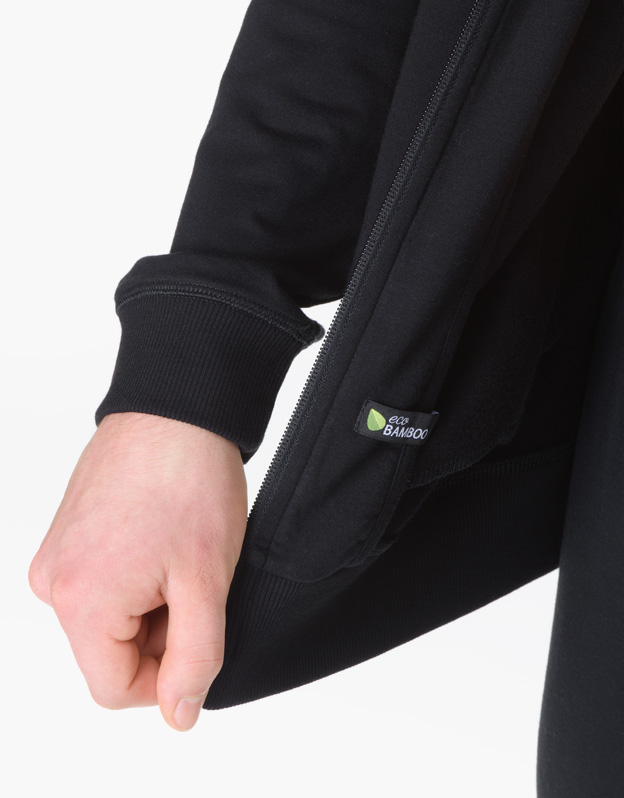 Materiál je vyrobený z bambusových vlákien, ktoré sú doplnené bavlnou a elastanom. Úplet je veľmi jemný a príjemný na každodenné nosenie. Mikinu oceníte na každodenné nosenie aj na športové aktivity.