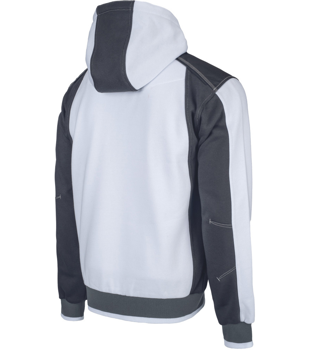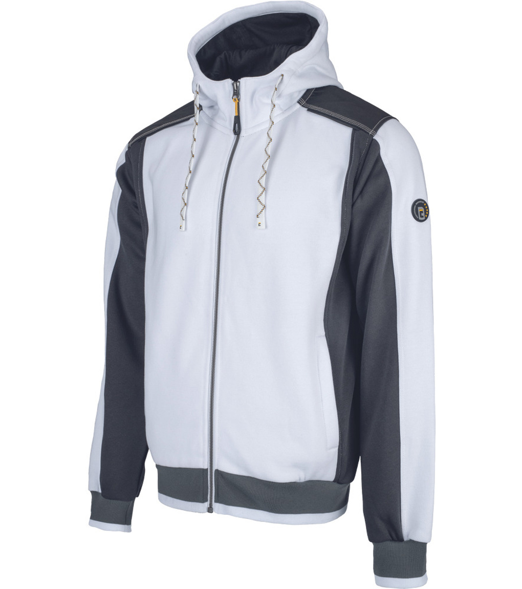 Popis: pánska mikina s kapucňou so zipsom po celej dĺžke; vo vnútri hrubá česaná teplákovina; pohodlný strih; oxfordská ramenná výstuž; 2 bočné vrecká so zapínaním na zips; reflexný odtieň vo farebných častiach; elastické rebrovanie na lemoch rukávov a spodných lemoch