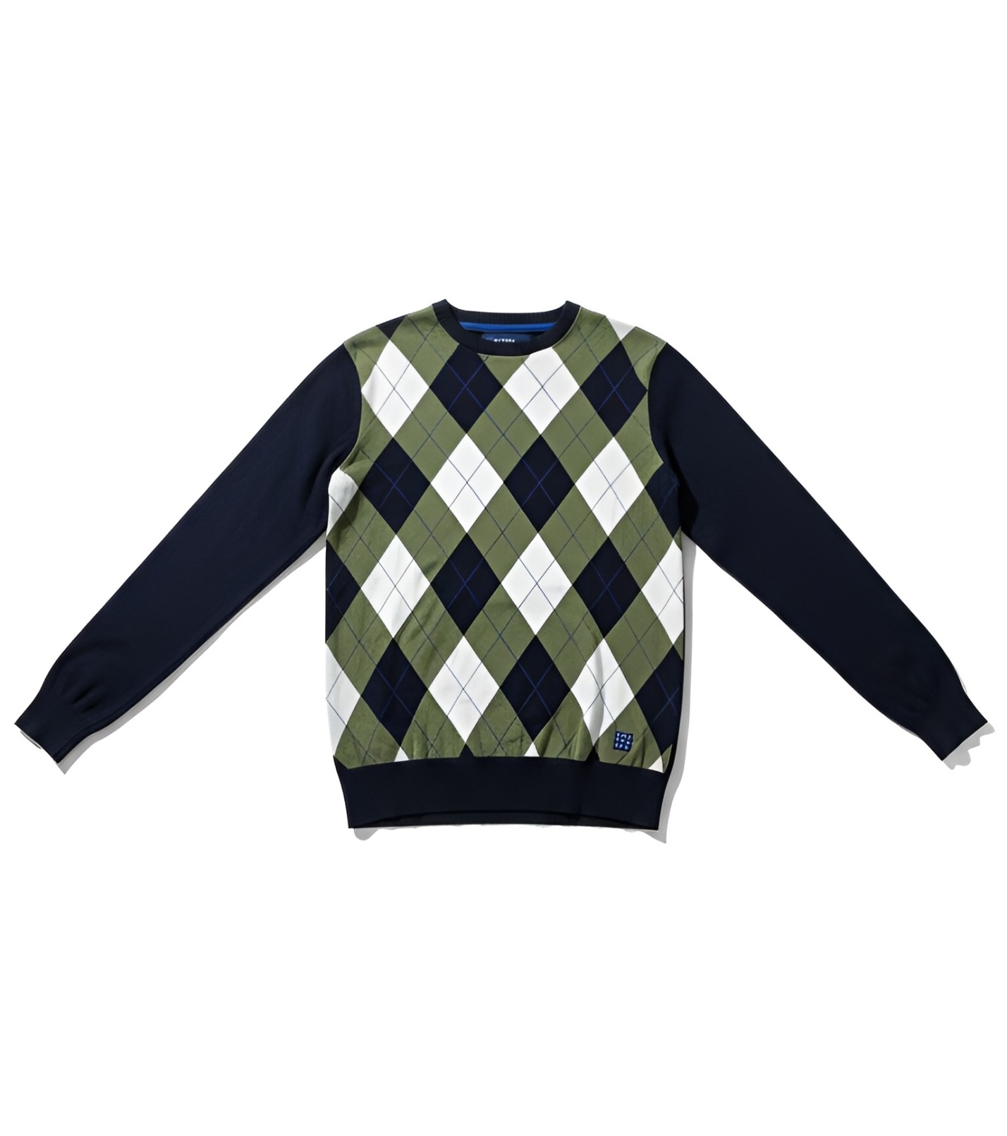 Pánsky sveter s výrazným kosoštvorcovým (argyle) so štýlovým kúskom pre každodenné nosenie. Kontrastné tmavé rukávy a lemy dodávajú mikiny moderný a čistý vzhľad.