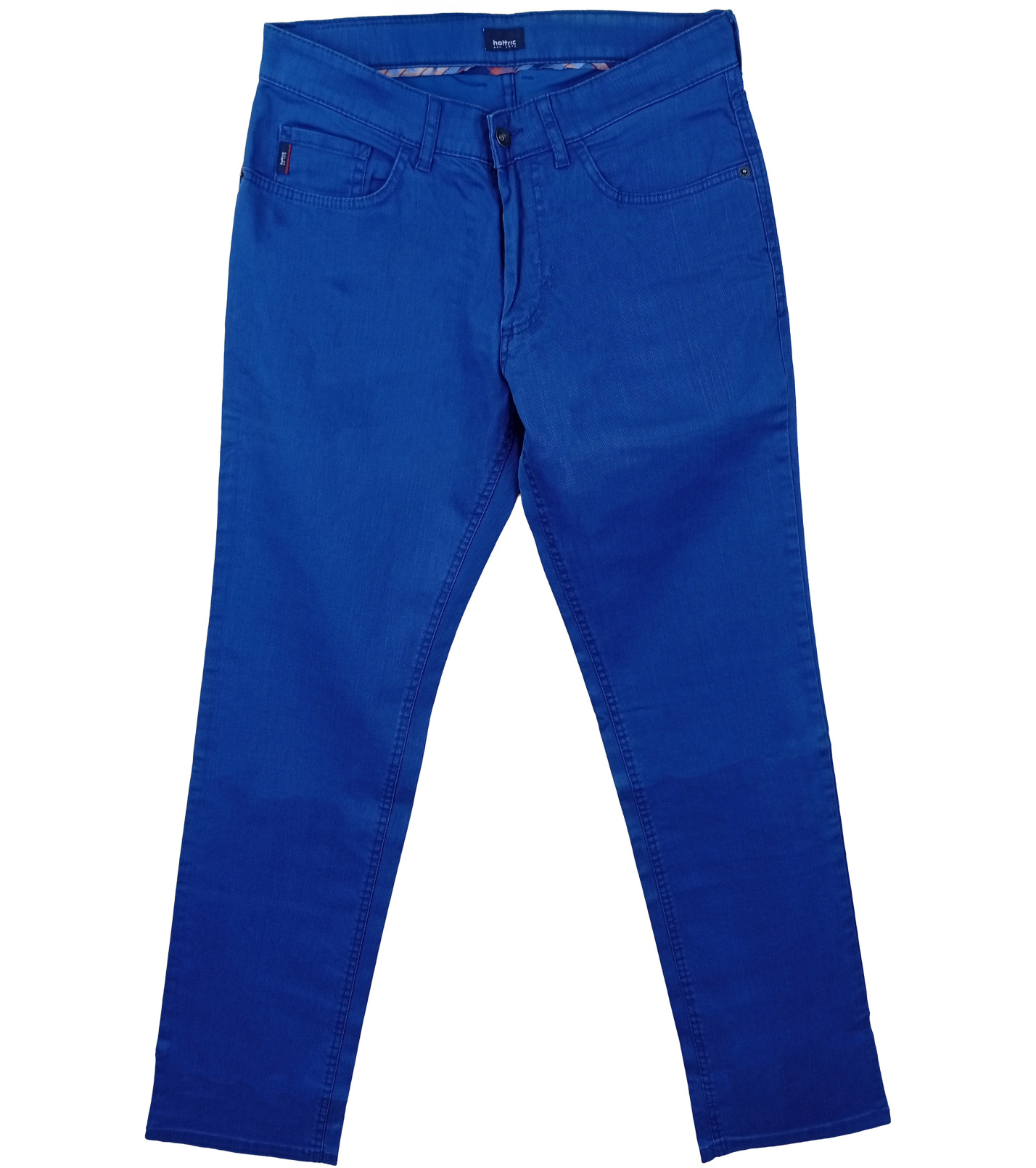 Tieto pánske džínsy značky Hattric sú vyrobené z pevného, ale pružného materiálu, ktorý zaisťuje pohodlie pri nosení aj pohyb. Sýto modrá farba s jemným nádychom tónovania dáva nohaviciam výrazný, ale stále univerzálny vzhľad, ktorý ľahko zladíte s košeľou aj tričkom. Precízne detaily ako klasické vrecká, pútka na opasok a decentné prešívanie zdôrazňujú kvalitu a praktickosť bez prehnaného zdobenia.