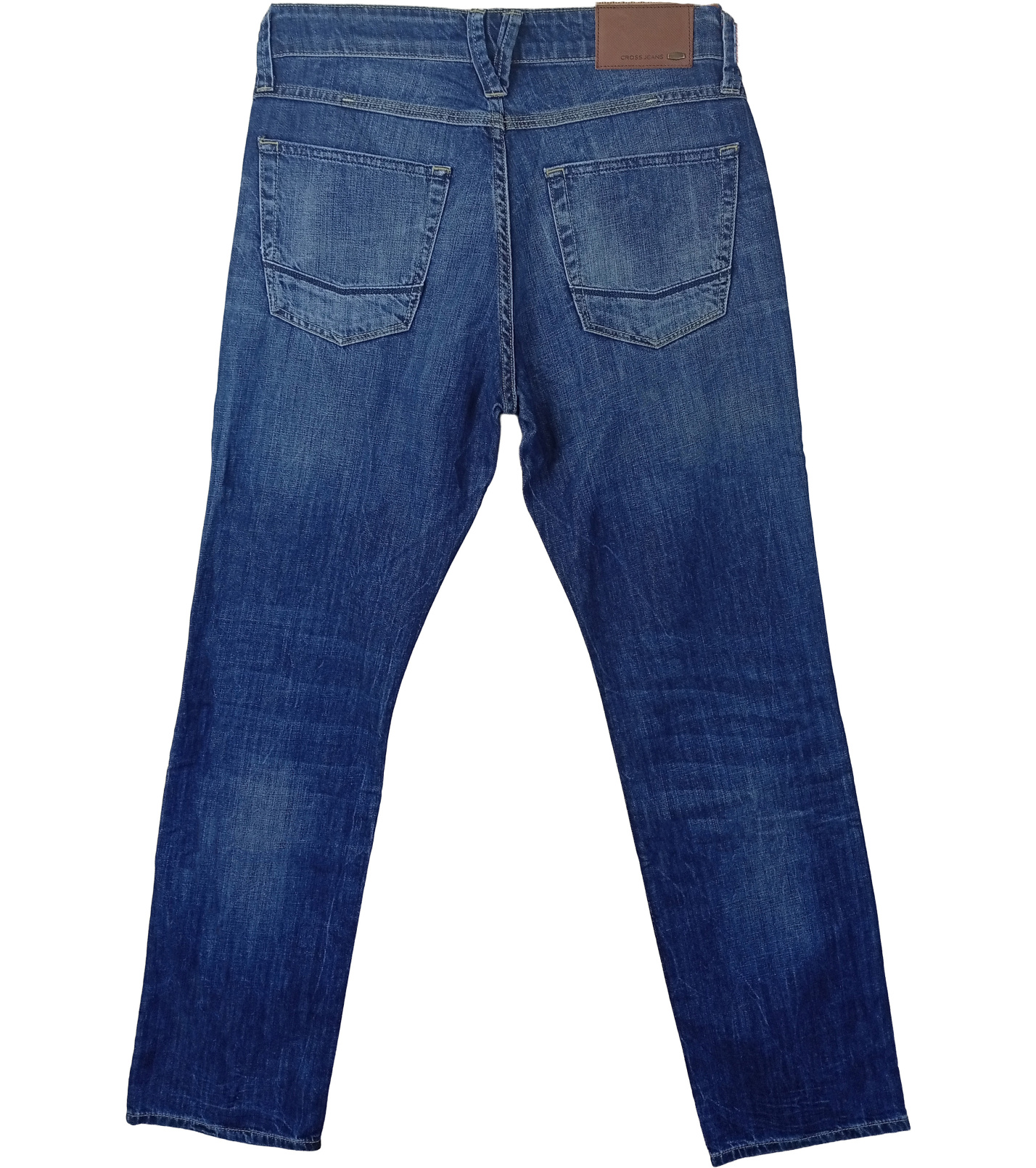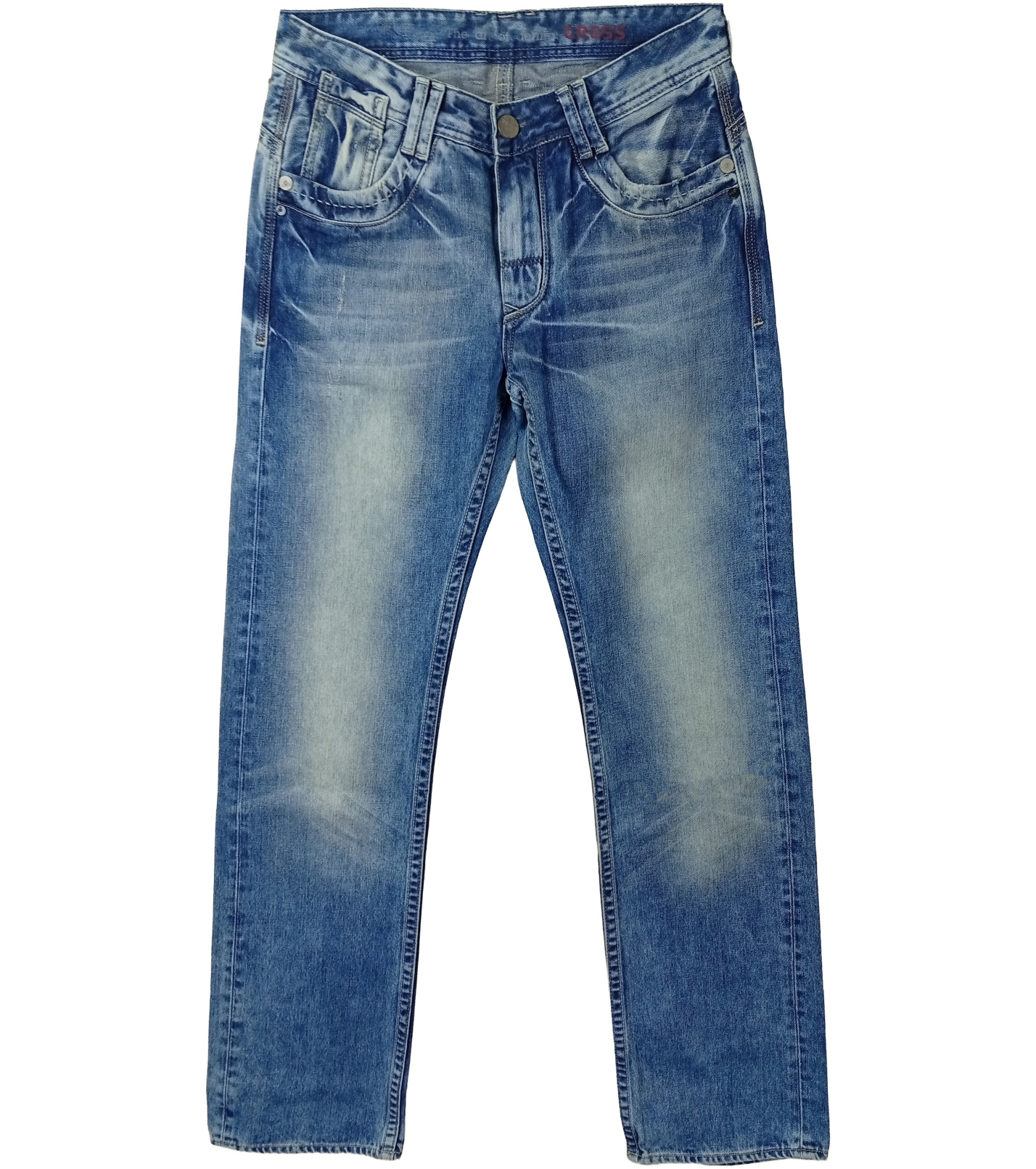 Pánske džínsy Cross ponúkajú pohodlný strih s klasickým pásom a zipsovým zapínaním, vhodné na každodenné nosenie. Denim má modrý odtieň s výrazným used efektom, čo dodáva džínsom štýlovo opotrebovaný look bez kompromisov na kvalite. Vďaka primeranej pružnosti materiálu sú tieto džínsy ideálnou voľbou pre aktívny deň a variabilné outfity – či už s tričkom na voľno, košeľou aj svetrom.