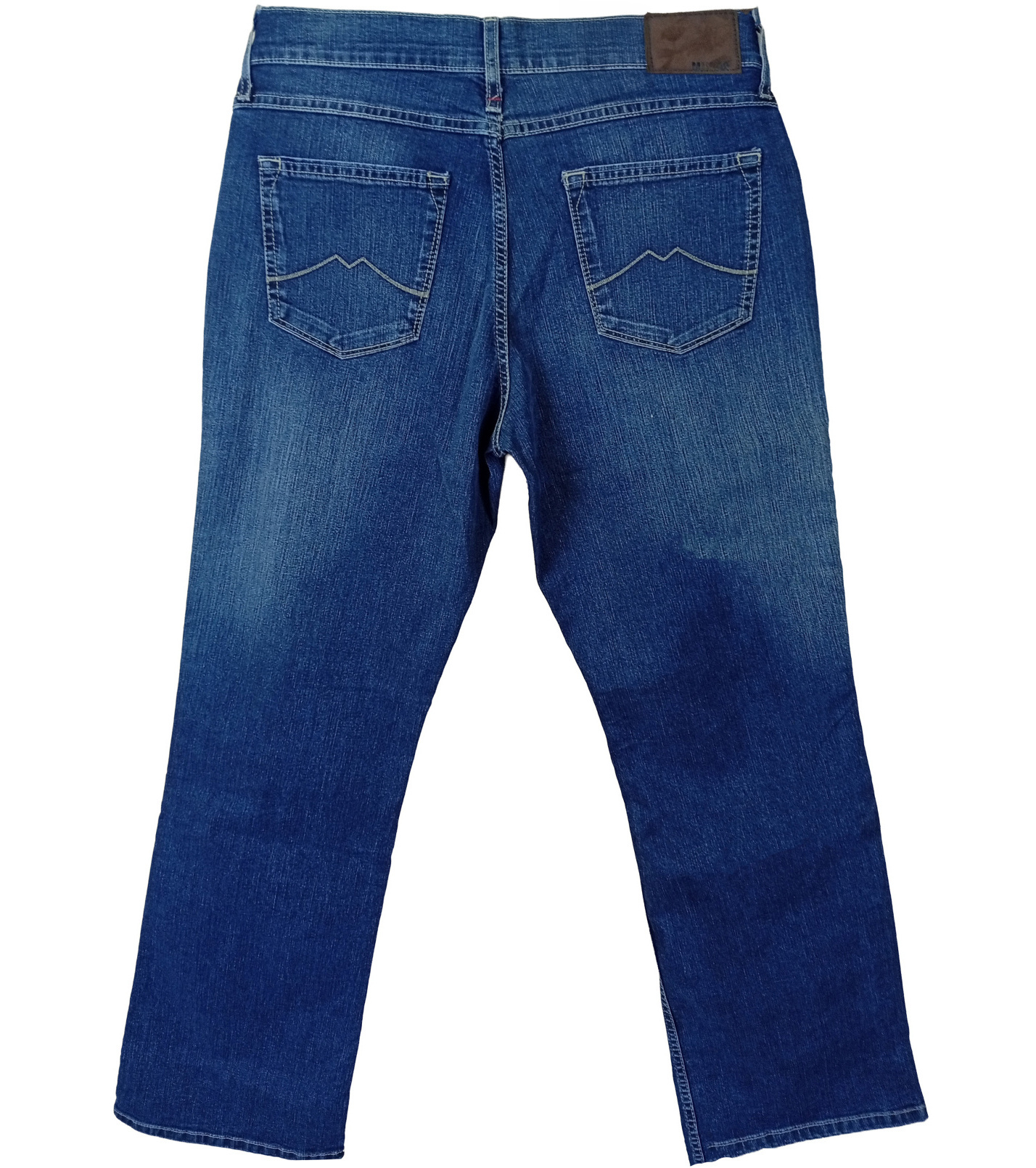Pánske džínsy Mustang z kolekcie Oregon v klasickom Regular Fit strihu so stredným pásom a rovnými nohavicami. Modrý denim s jemným opraním dodáva rifliam nadčasový vzhľad a univerzálne využitie. Vďaka kvalitnému materiálu s prímesou elastanu sú pohodlné na nosenie a dobre držia tvar. Spoľahlivý model, ktorý sa hodí pre každodenný outfit aj voľný čas.