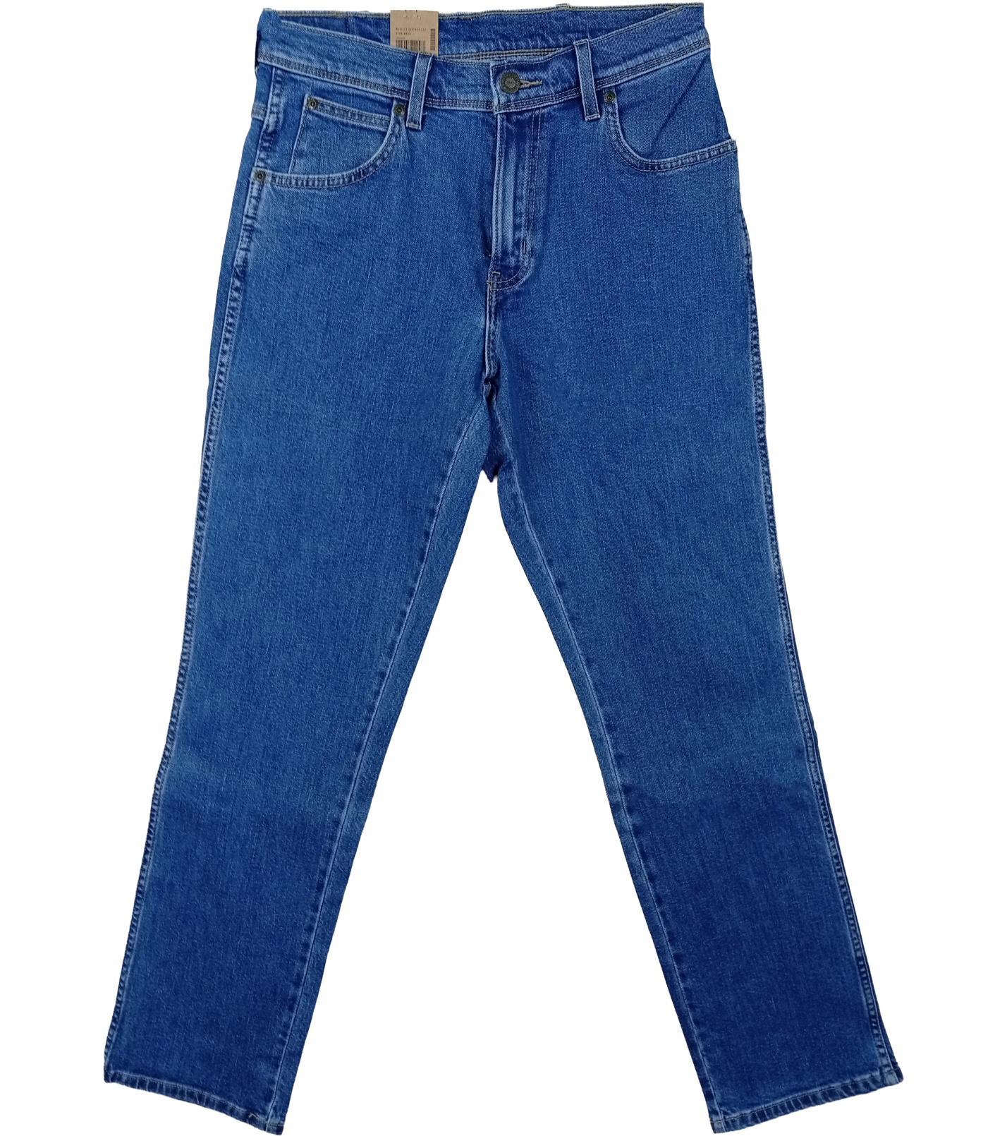 Klasické pánske džínsy, ktoré sa vyznačujú odolnosťou a nadčasovým štýlom. Vyrobené z pevnej bavlnenej džínsoviny, ponúkajú spoľahlivosť pri každodennom nosení a dlhú životnosť. Strih je pohodlný, s tradičným zapínaním na zips a gombík a piatimi vreckami, ktoré podčiarkujú autentický vzhľad Wrangler.