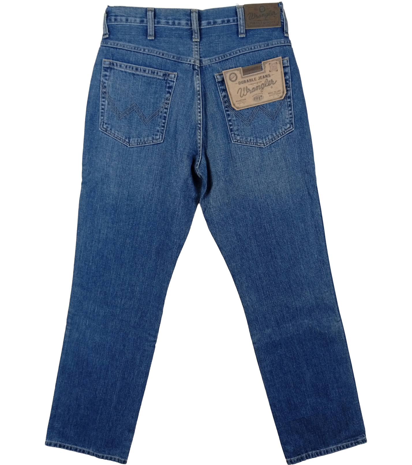 Pánske džínsy Wrangler v klasickom modrom denime s ľahkým vyšúchaním ponúkajú pohodlný rovný strih so stredne vysokým pásom. Majú zapínanie na zips s gombíkom, päť vreciek a zadné vrecká zdobené typickým „W“ prešitím a koženým štítkom Wrangler.