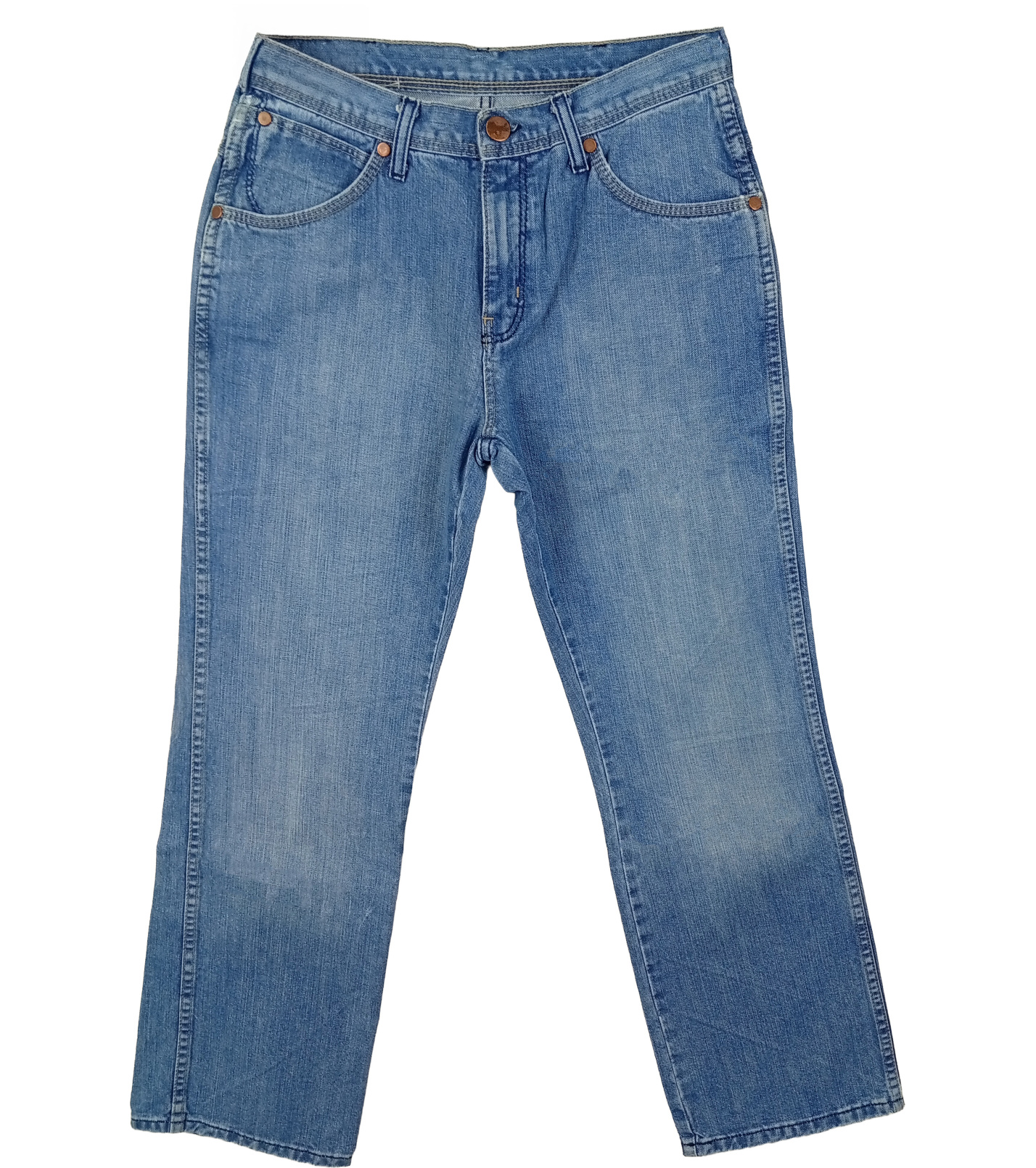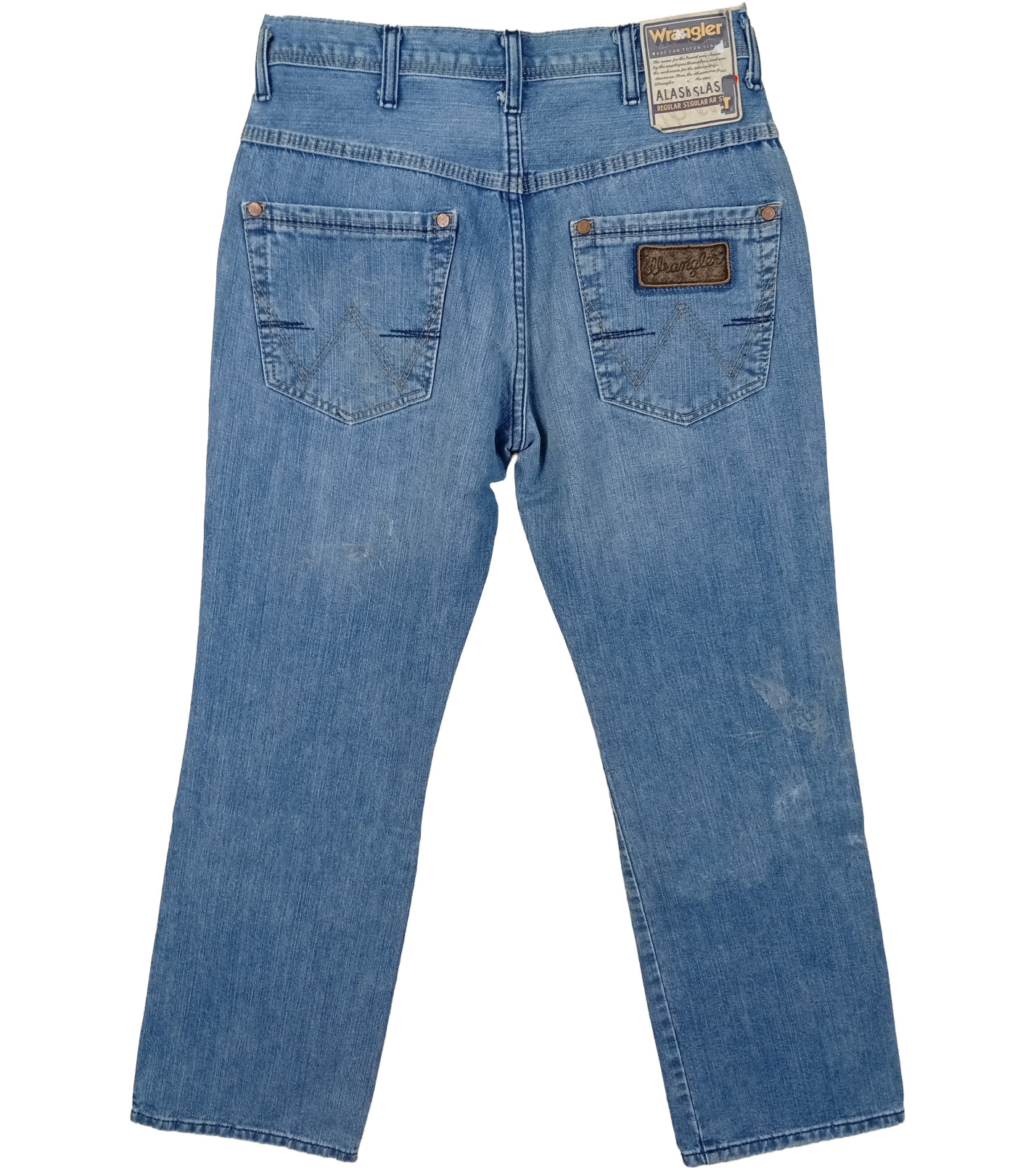 Pánske džínsy Wrangler Alaska v klasickom svetlo modrom denime prinášajú pohodlný rovný strih (regular fit), ktorý sa hodí na každodenné nosenie. Majú stredne vysoký pás, zapínanie na zips s gombíkom a päťvreckový dizajn s typickým „W“ prešívaním na zadných vreckách.