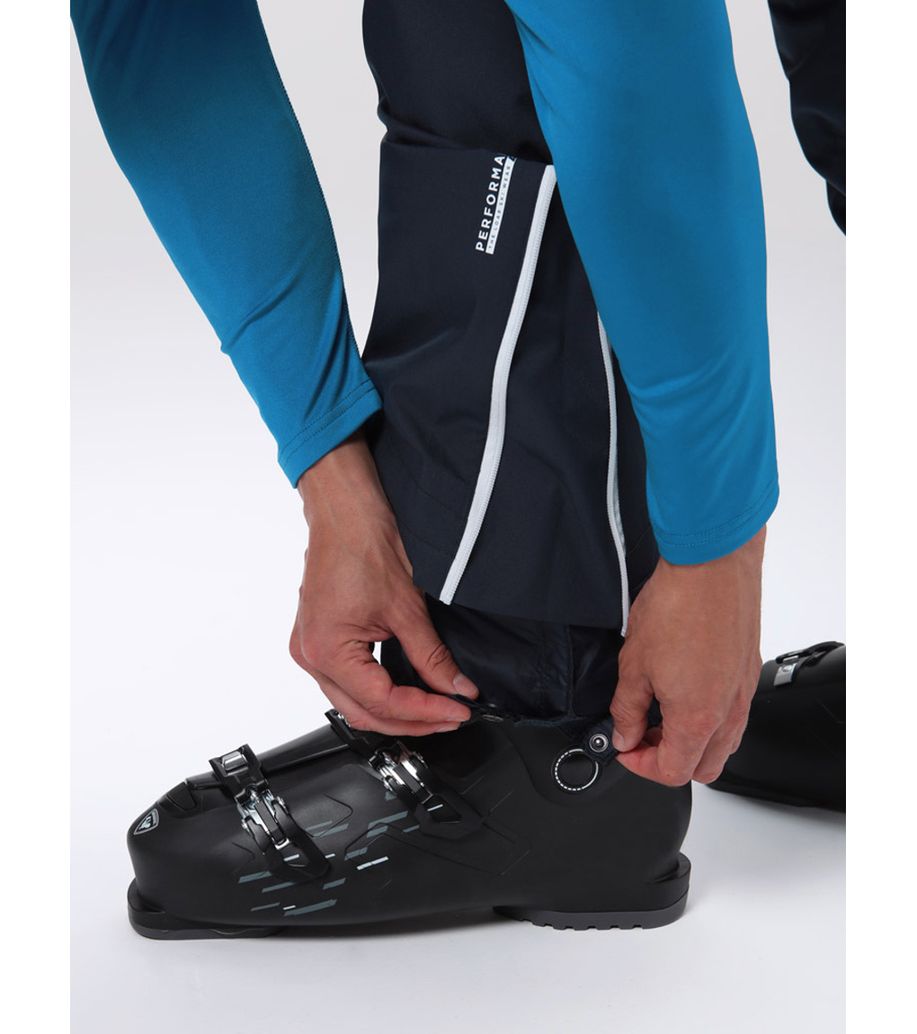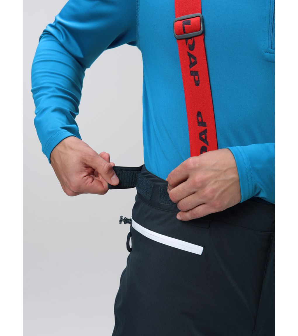 Spoľahlivý základ pre svah - pánske lyžiarske nohavice s vysokou ochranou. Tieto pánske lyžiarske nohavice vás udržia v suchu, teple a pohodlí aj počas náročného dňa na zjazdovke. Vďaka vodeodolnej membráne AQUA PRO, lepeným švom a vodnému stĺpcu 15 000 mm odolajú snehu aj dažďu. Priedušnosť 5 000 g/m2/24 h zaisťuje odvod vlhkosti a príjemnú klímu aj pri intenzívnom pohybe. Zateplenie z dutých vlákien POLYTHERM výborne izoluje a skvele sa prispôsobí postave. Hladká taftová podšívka z polyesteru zvyšuje komfort pri nosení a uľahčuje obliekanie. Nohavice majú klasický strih, ktorý neobmedzuje v pohybe, a sú ušité z odolného materiálu STORMEX. Vnútorné elastické nohavice zabraňujú prenikaniu snehu do topánok, spodné okraje sa zapínajú na zips a cvok pre ľahké obliekanie cez lyžiarsku obuv. Praktickým doplnkom sú odnímateľné traky s logom, ktoré zaistia, že nohavice perfektne držia na mieste aj pri pohybe v teréne. Dve vonkajšie vrecká poskytujú priestor pre všetko potrebné – od skipasu po vreckovku. Ideálny parťák pre každého lyžiara, ktorý nechce robiť kompromisy medzi funkčnosťou a pohodlím.