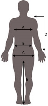 | A | Obvod hrudníka | 86 - 94 | 94 - 102 | 102 - 110 | 110 - 116 | 116 - 128 | 126 - 132 |