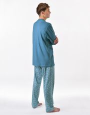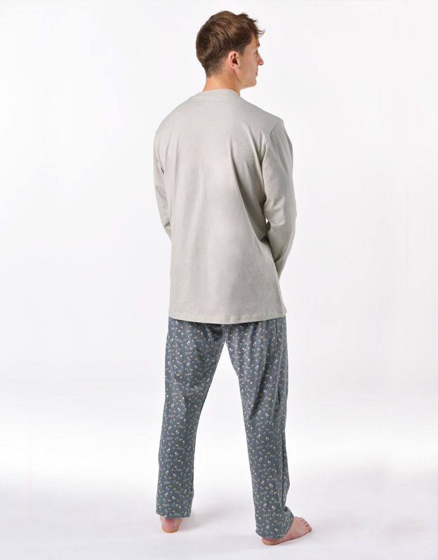 Pánske klasické pyžamo voľného strihu z jemného úpletu Vám poskytne pohodlie počas spánku. Nohavice s menším vzorom dopĺňa tričko s dlhými rukávmi a väčšou potlačou na hrudi.
