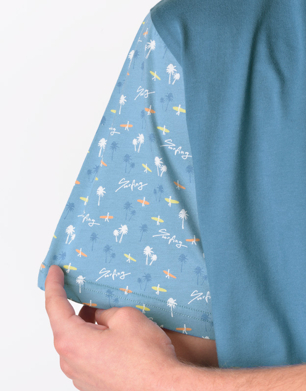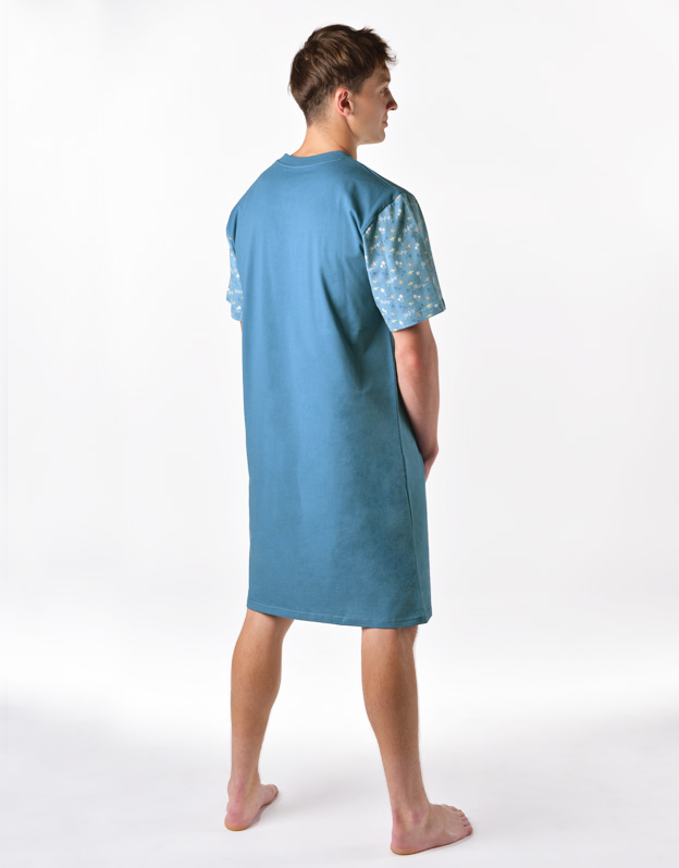 Pánska nočná košeľa s krátkymi rukávmi z jemného úpletu Vám poskytne jedinečné pohodlie počas spánku. Rukávy sú potlačené drobnejším vzorom.