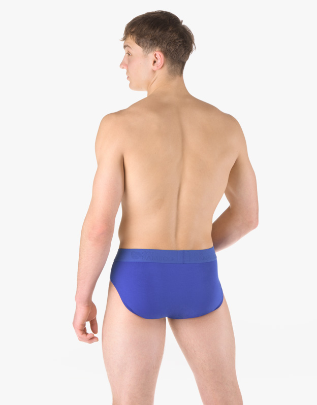 Slipy so širším bokom, pánske šité prádlo. V pásovom kraji je našitá širšia guma. V nohavičkách je zašitá úzka guma. Slipy sú jednofarebné.