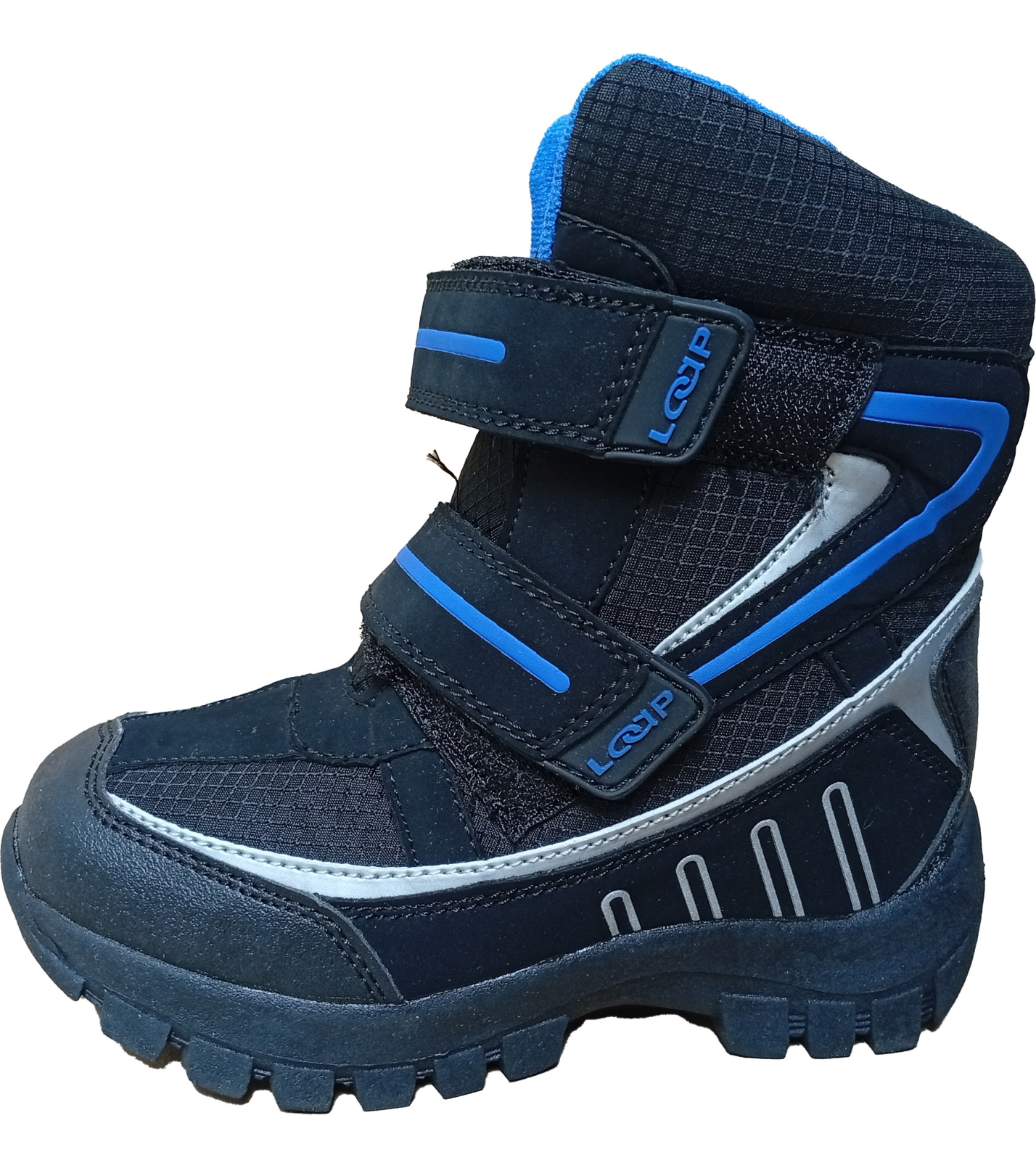 Detské zimné topánky Loap sú spoľahlivou obuvou do chladného počasia, ktorá kombinuje odolné materiály a pohodlné spracovanie. Vďaka vysokému strihu poskytujú dobrú oporu a ochranu členku, zatiaľ čo pevná podošva so vzorom zaisťuje stabilitu aj na klzkom povrchu.