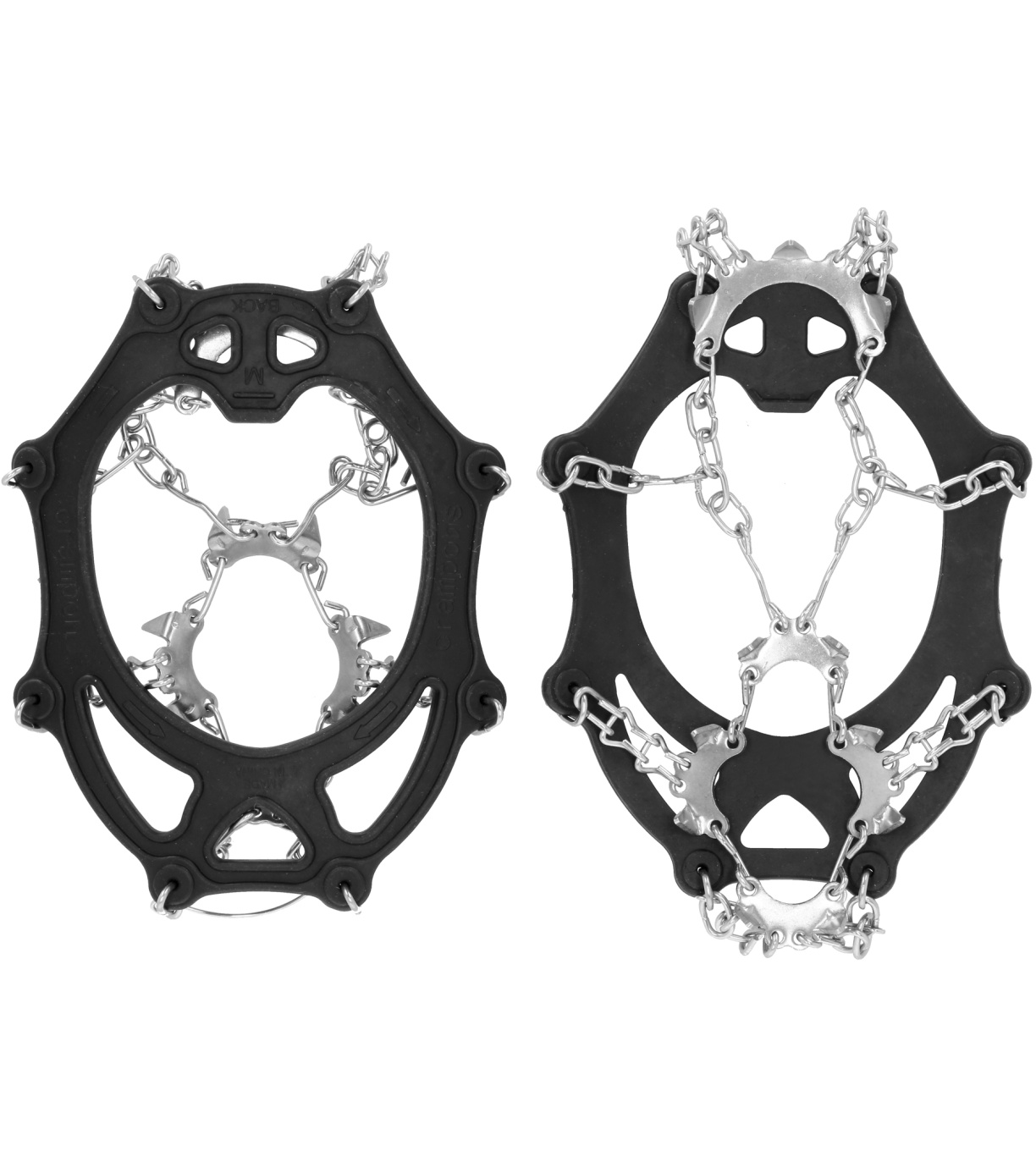 Veľkou výhodou nesmekov Spokey SECU je, že nemajú žiadne zvláštne požiadavky na tuhosť obuvi . To znamená, že ich môžete nasadiť na akýkoľvek typ topánok! Majú optimálny počet hrotov (11 ), ktoré zaisťujú bezpečnosť a zároveň nepredstavujú zbytočnú záťaž, čo určite ocenia milovníci expedícií, ktorým záleží na hmotnosti ich vybavenia. Retiazkové nesmeky na topánky Spokey SECU sú veľmi ľahké, pohodlné a nezaberú v batohu veľa miesta. S nimi budete vždy pripravení, keď sa počasie v horách zmení z minútu na minútu alebo keď na trase narazíte na nebezpečný terén.