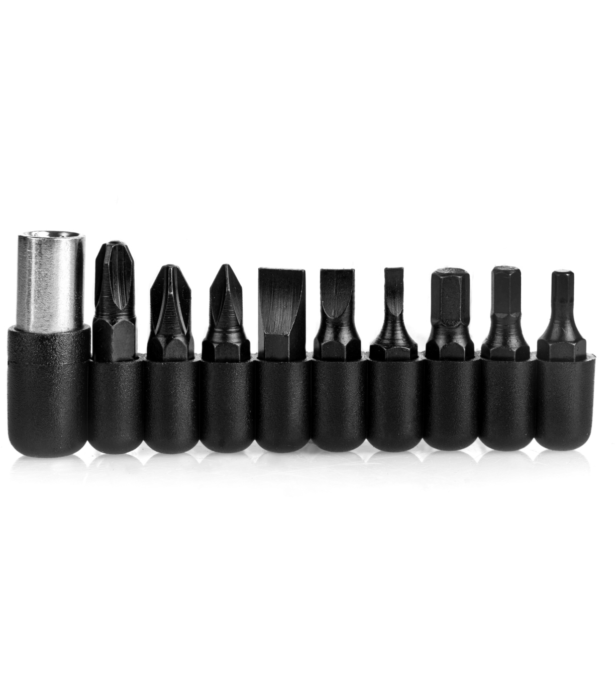 - sada obsahuje i bity, které lze velmi snadno vyměnit a přizpůsobit různým šroubům