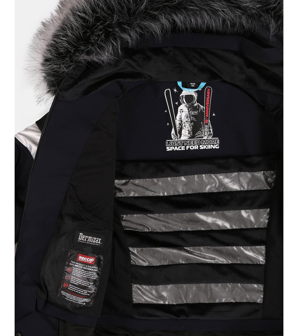 Všitá ochranná snehová manžeta, ktorá zabraňuje prenikaniu snehu pod odev. V spodnej časti je našitá elastická protišmyková guma.