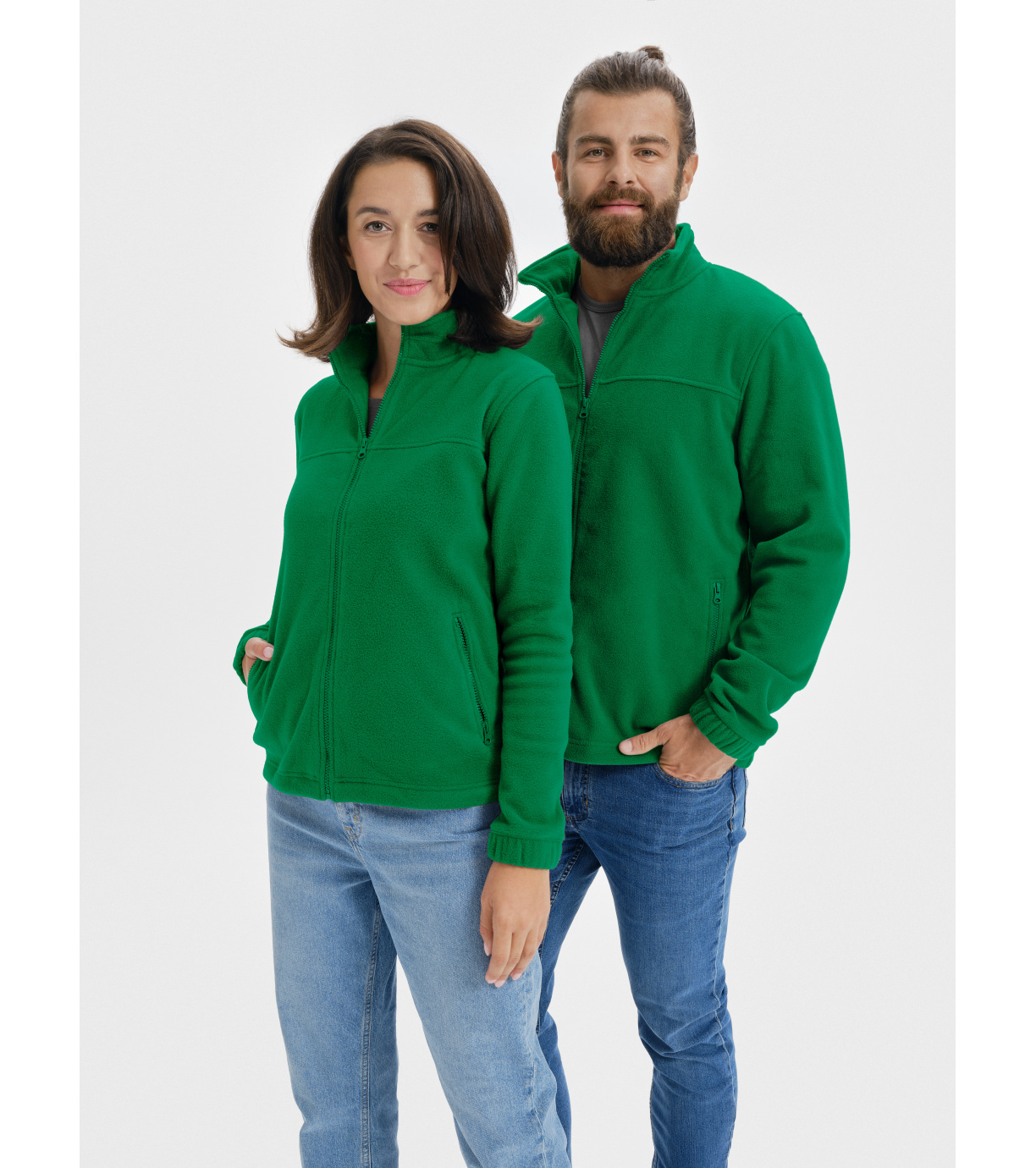 Panská fleecová bunda z hrejivého materiálu vhodná na vyšívanie a gravírovanie, má vnútorný výstrih s páskou vo farbe vrchného materiálu, kostený zips po celej dĺžke, vrecká s kosteným zipsom, spodný okraj s elastickou šnúrkou, lemy rukávov s elastickým lemom a úpravu proti žmolkovaniu na vonkajšej strane.
