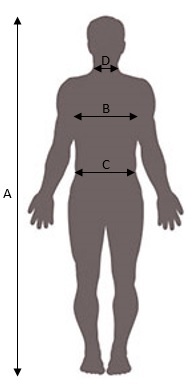 | B | Obvod hrudníka | 88 - 92 | 96 - 100 | 104 - 108 | 112 - 116 | 120 - 126 | 132 - 138 | 144 - 150 |