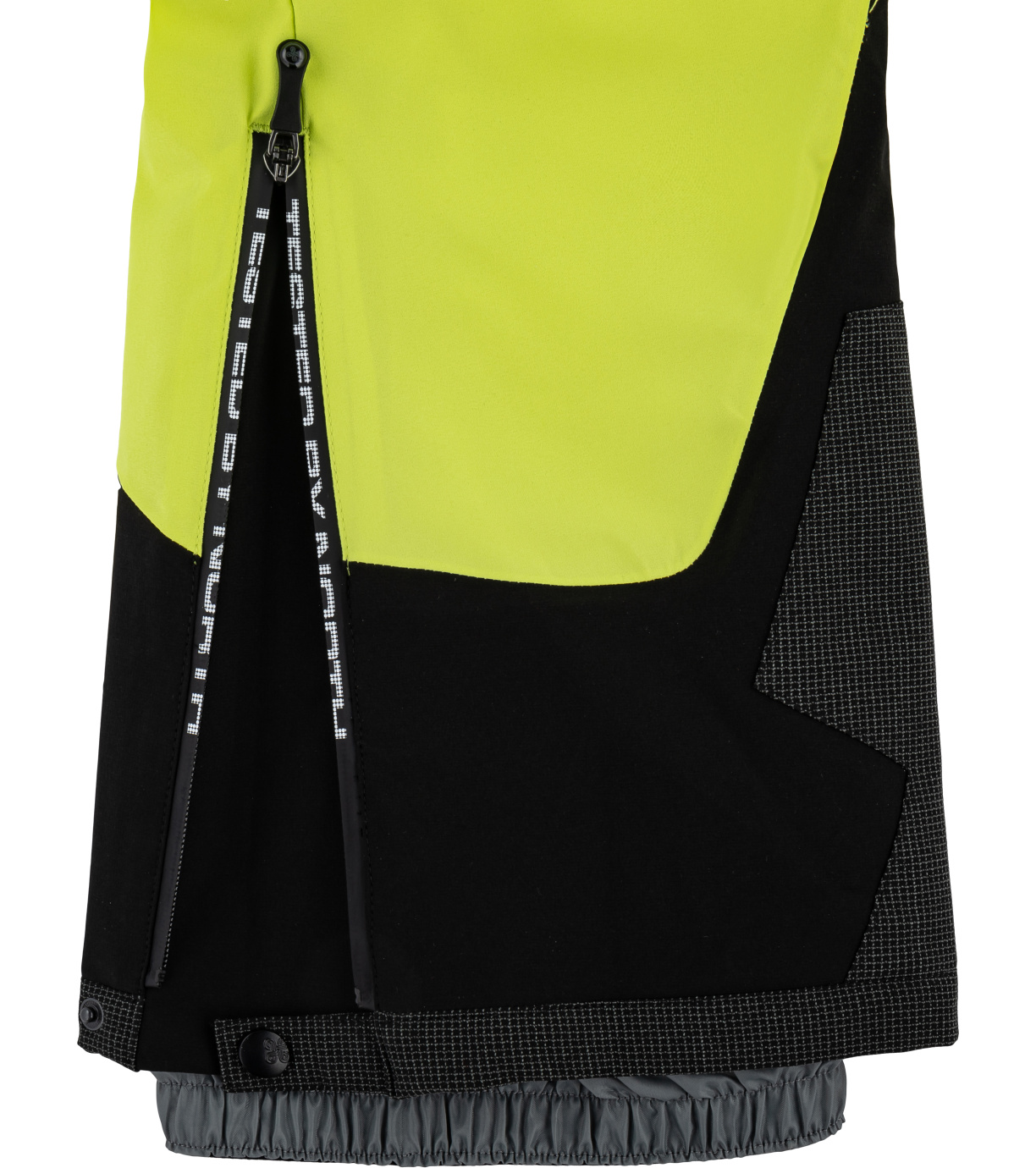 Všitá ochranná snehová manžeta, ktorá zabraňuje prenikaniu snehu pod odev. V spodnej časti je našitá elastická protišmyková guma.