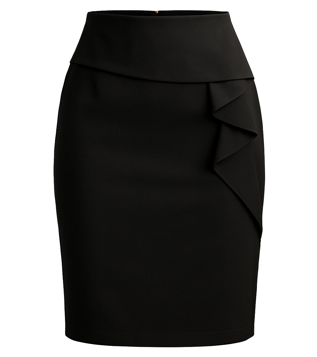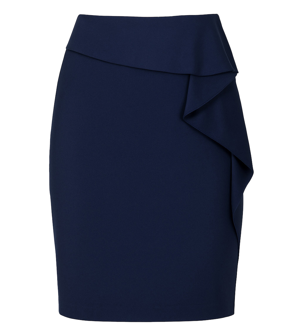Dámska spoločenská sukňa z príjemného materiálu je mierne pod kolená. Prednú časť sukne zdobí splývavý volán. Vzadu sa zapína na zips. Rozparok, podšívka.