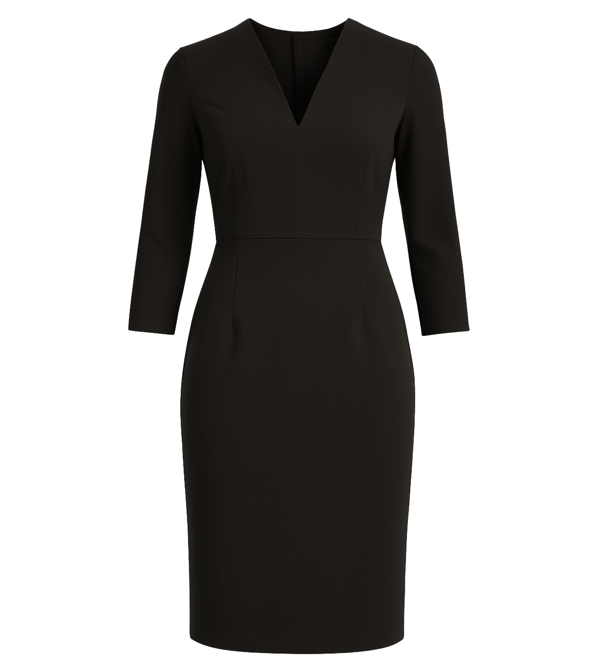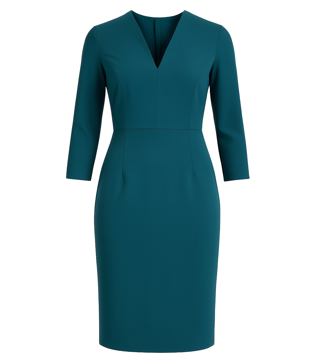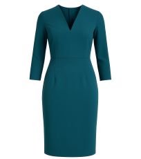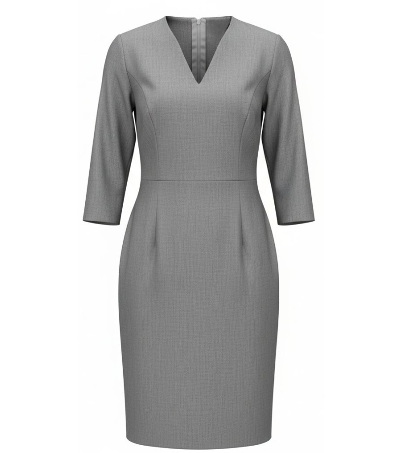 Dámske plášťové šaty s 3/4 rukávmi majú veľmi jednoduchý dizajn s výstrihom do V. Zapínanie na zips na zadnej strane. Šaty nemajú podšívku.