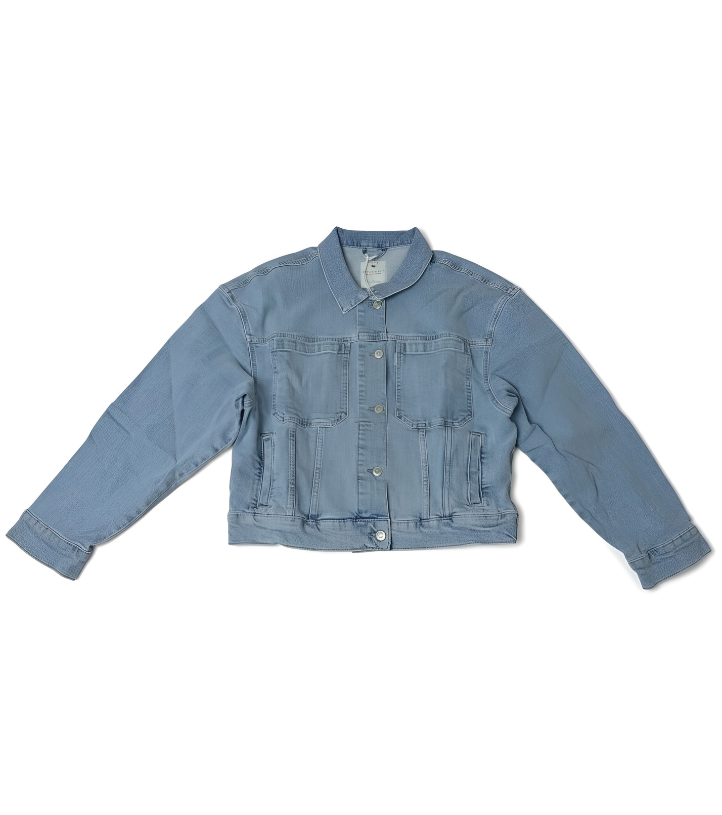 Štýlová dámska džínsová bunda v klasickom svetlo modrom odtieni je nepostrádateľným kúskom do každého šatníka. Má zapínanie na gombíky, dve náprsné vrecká a dve bočné vrecká. Ľahký, pohodlný materiál a nadčasový strih zaručujú univerzálne využitie - skvele sa hodí k šatám, sukni aj nohaviciam. Ideálne pre jarnú a letnú sezónu.