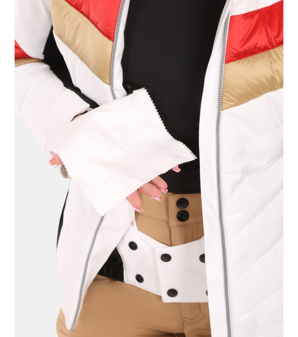 Všitá ochranná snehová manžeta, ktorá zabraňuje prenikaniu snehu pod odev. V spodnej časti je našitá elastická protišmyková guma.