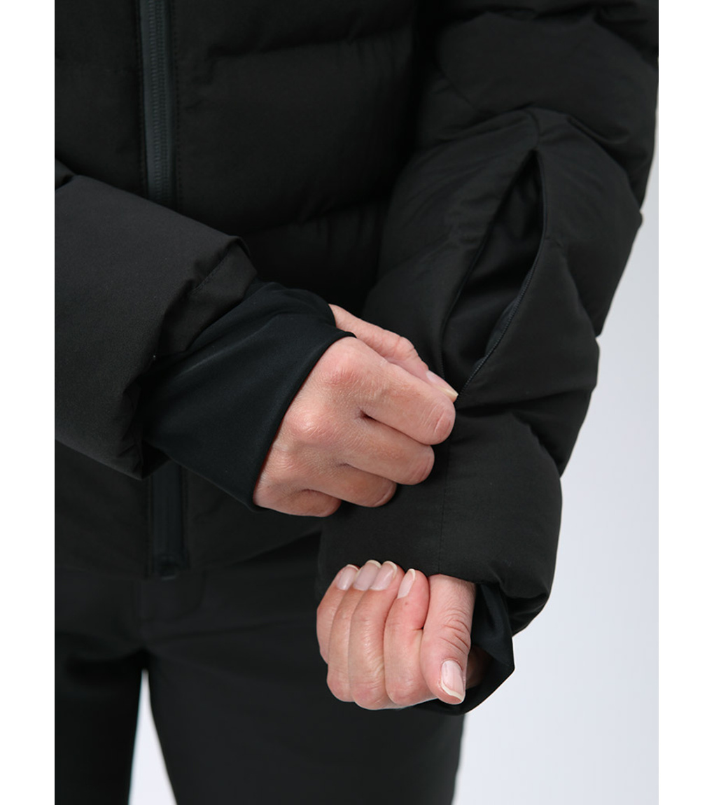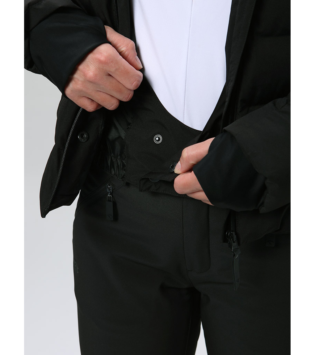 Všitá ochranná snehová manžeta, ktorá zabraňuje prenikaniu snehu pod odev. V spodnej časti je našitá elastická protišmyková guma.