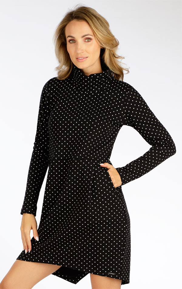 Prekrížený stojak. Členený strih so skladmi na sukni a bočnými vreckami. Dlhší zadný diel s rázporkom. Vysoký obsah bavlny v kombinácii s elastanom zaručuje priedušnosť, tvarovú stálosť a príjemný pocit pri nosení. Veľmi pohodlný, pružný bavlnený úplet.