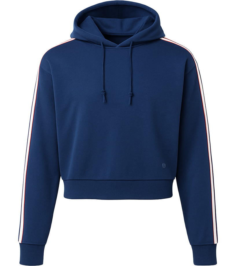 Dámska mikina s kapucňou - pohodlie a štýl v jednom. Táto dámska mikina cez hlavu je ideálnou voľbou na každodenné nosenie, voľný čas aj športové aktivity. Vyrobená z príjemnej zmesi 60% bavlny a 40% polyesteru, ponúka optimálnu kombináciu mäkkosti, priedušnosti a odolnosti. Mikina je vybavená praktickým klokaním vreckom na zahriatie rúk alebo uloženie drobností. Štýlovým detailom sú kontrastné prúžky na rukáve, ktoré dodávajú mikine moderný a športový vzhľad. Kapucňa so sťahovacou šnúrkou zaisťuje ochranu pred vetrom a dotvára ležérny štýl.