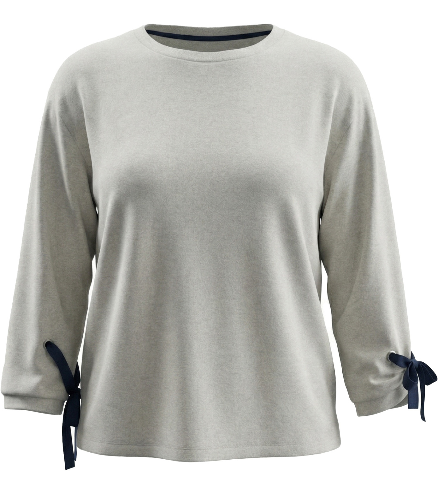 Dámsky kardigán je voľného strihu. Vzadu je mierne dlhší. Rukávy sú zdobené šnúrkou, ktorou sa dajú rukávy stiahnuť.