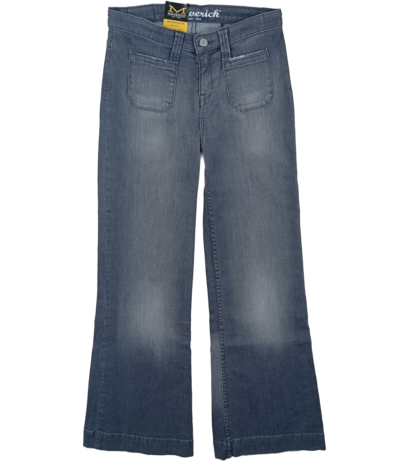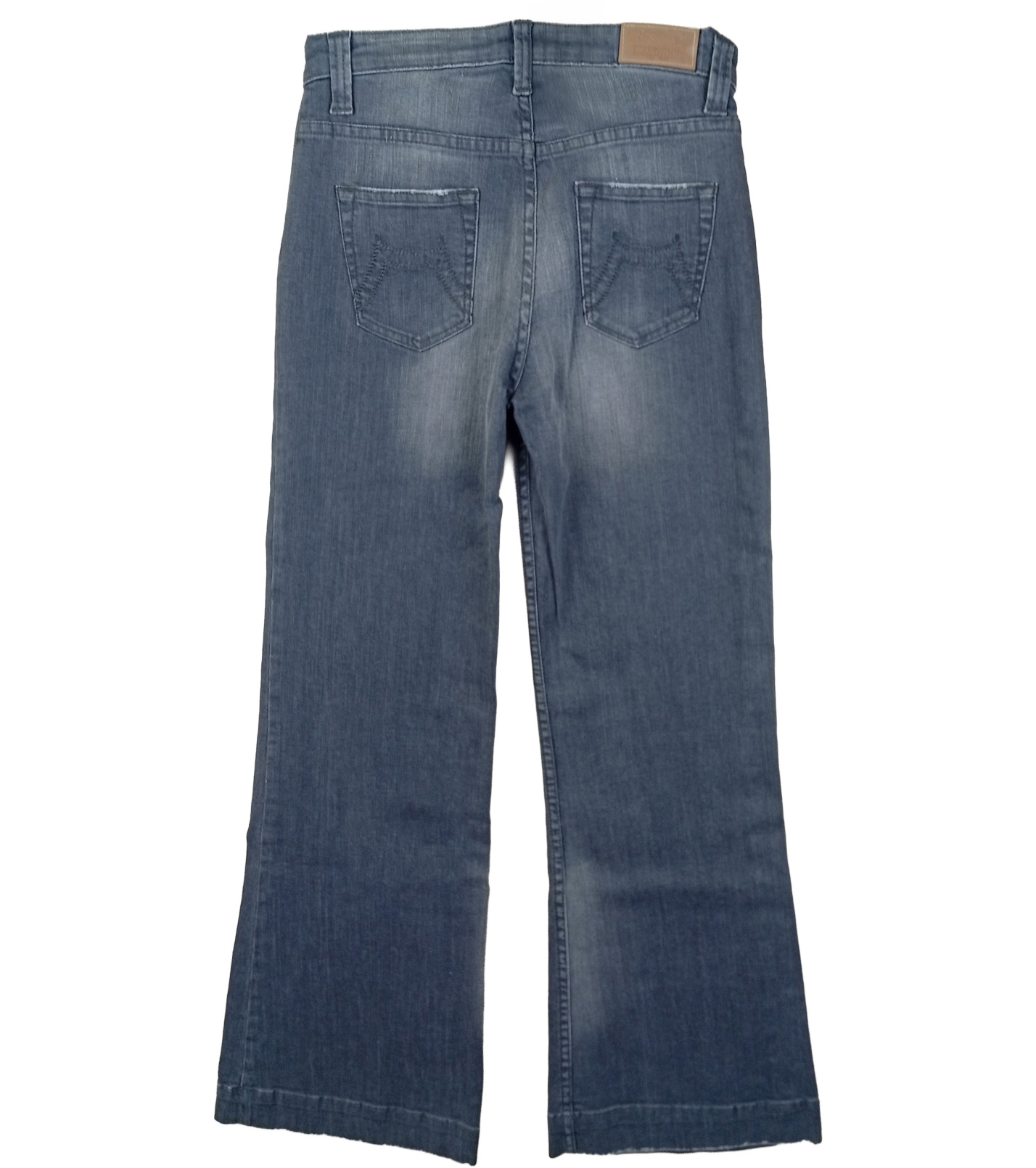 Dámske džínsy z kvalitného denimu v modernom šedo modrom odtieni. Majú vyšší pás, ktorý dobre drží tvar a zvýrazňuje siluetu. Rovný až ľahko rozšírený strih nohavíc zaisťuje pohodlie pri nosení a nadčasový vzhľad. Predné aj zadné vrecká sú praktické a dopĺňajú klasický džínsový design. Jemné prešisovanie dodáva nohaviciam ležérny charakter. Ideálna voľba pre každodenné nosenie, ľahko kombinovateľná s tričkom, blúzkou aj svetrom.