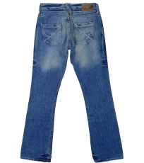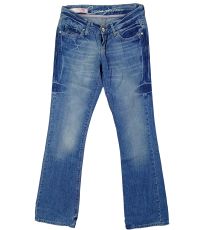 Klasické dámske džínsy vo svetlo modrom prevedení. Vyrobené z kvalitnej džínsoviny s ľahko opraným efektom v oblasti stehien a vreciek. Strih bootcut - mierne rozšírené nohavice smerom dole, ktoré lichotia postave a skvele padnú k teniskám aj podpätkom.