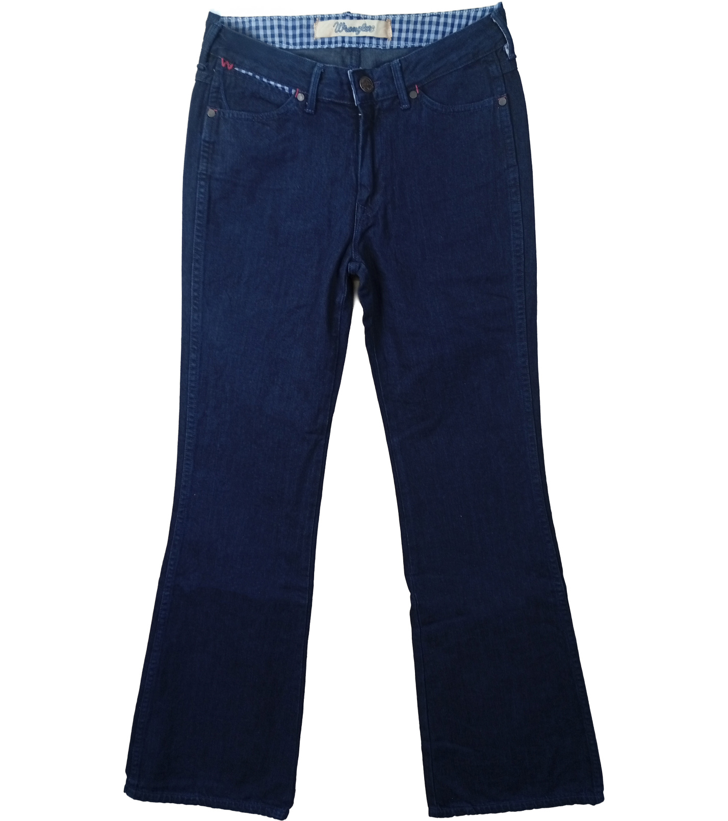 Dámske džínsy Wrangler Joni Flare v tmavo modrom denime bez výrazného oprania predstavujú univerzálny a elegantný kúsok, ktorý sa hodí na každodenné nosenie aj špeciálne príležitosti. Vnútorný lem v kockovanom vzore dodáva džínsom originálny detail, ktorý podčiarkuje ich osobitý štýl.