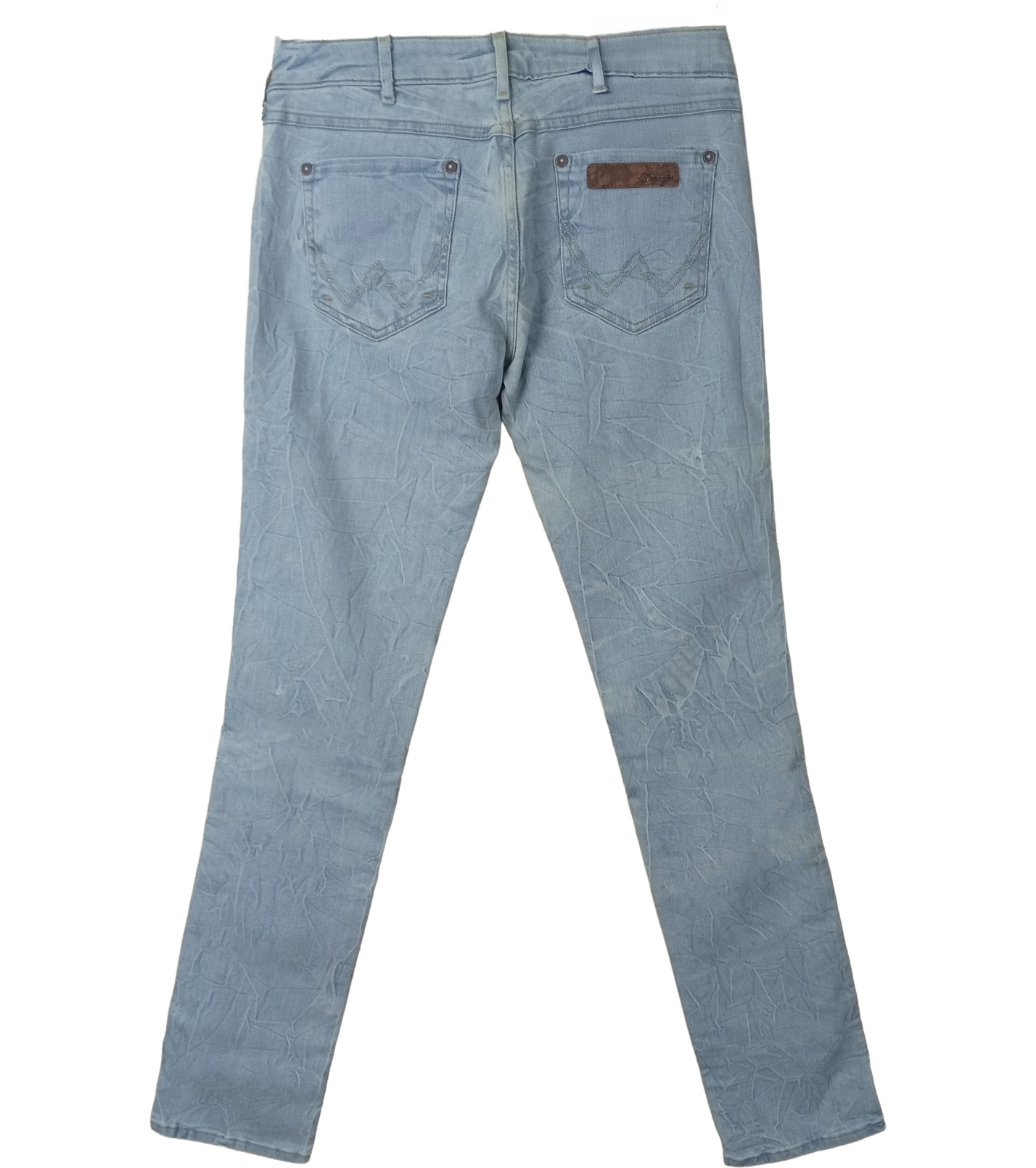 Dámske džínsy Wrangler v modernom svetlo modrom odtieni majú úzky strih, ktorý elegantne kopíruje líniu postavy. Vyrobené sú z pohodlného denimu s ľahkým opraným efektom a klasickým päťvreckovým prevedením. Skvele sa hodí k ležérnym outfitom aj k viac ženským kombináciám s blúzkou alebo sakom.