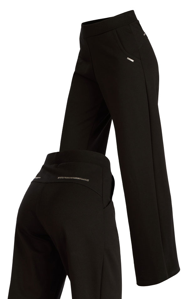 Elegantný štýl s vyšším sedom a elastickým pásom. Široké nohavice s bočnými vreckami. Na sedle zadného dielu ozdobná aplikácia z kamienkov. Silnejší elastický úplet perfektne drží tvar a je príjemný na nosenie. Veľmi praktický kombinovateľný kúsok.