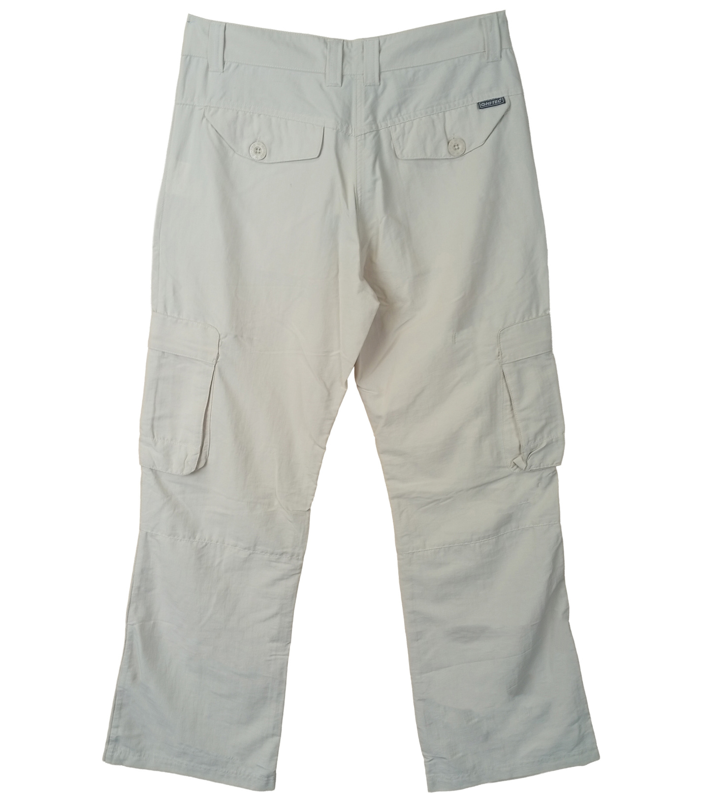 Dámske cargo nohavice sú praktickou a pohodlnou voľbou pre voľný čas aj aktívny pohyb. Nohavice majú klasické zipsy na gombík, pútka na pásku a niekoľko funkčných vreciek – dve predné vrecká na zips a rovné bočné vrecká na stehnách.