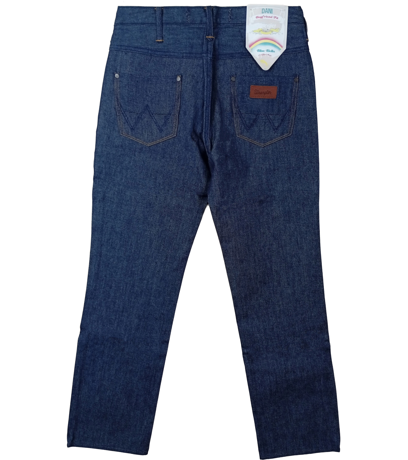 Džínsy majú klasické zapínanie na zips a gombík, predné vrecká vrátane malého vrecka na mince a dve zadné vrecká s ikonickým prešívaním „W“. Nechýba ani kožený štítok Wrangler, ktorý podčiarkuje ich autentický charakter.