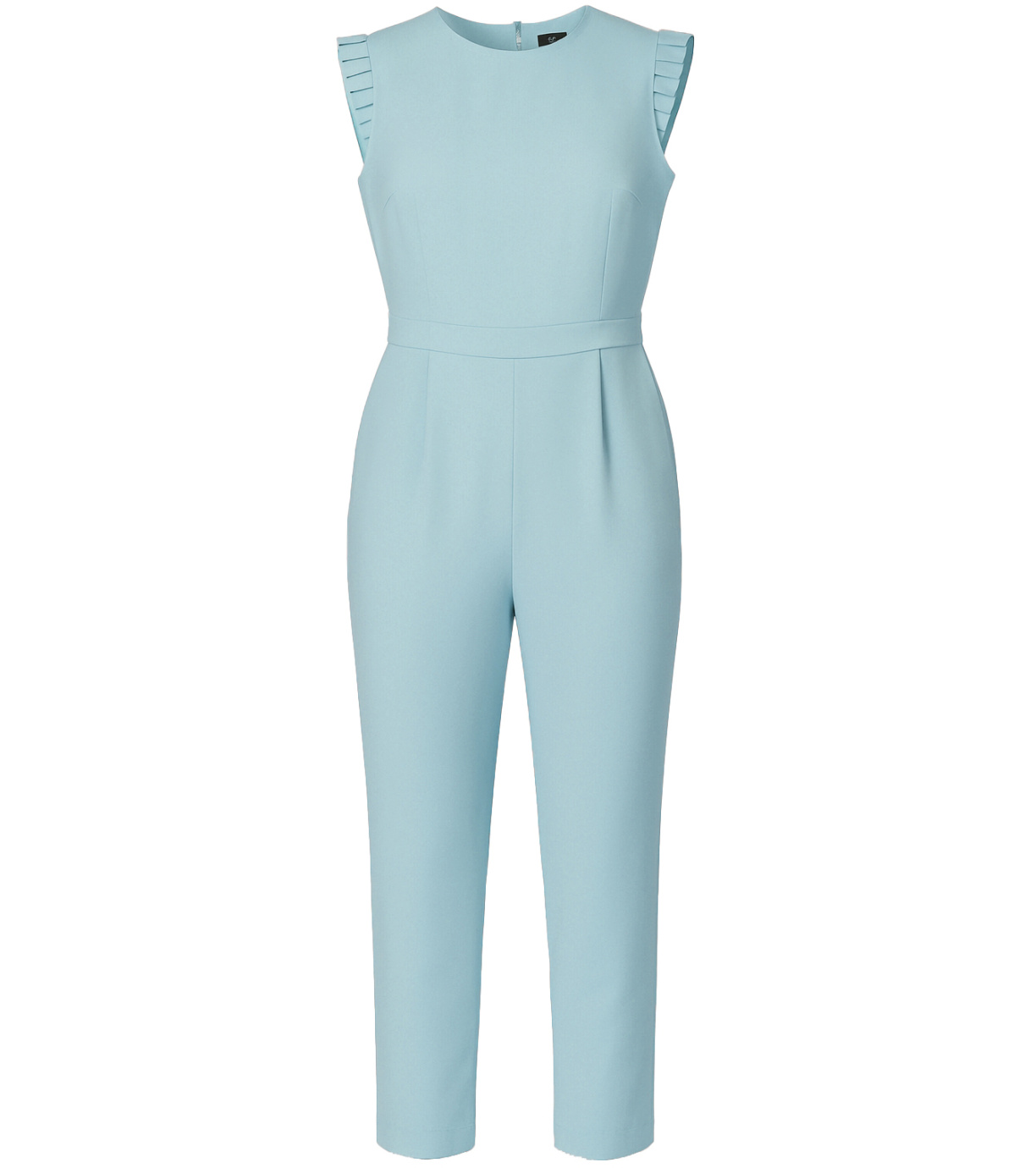 Dámsky overal bez rukávov. Švy na prednej a zadnej strane. V páse je elegantný pruh, ktorý rozdeľuje hornú a dolnú časť. Kombinéza má dve vrecká a zapínanie na zips na zadnej strane.