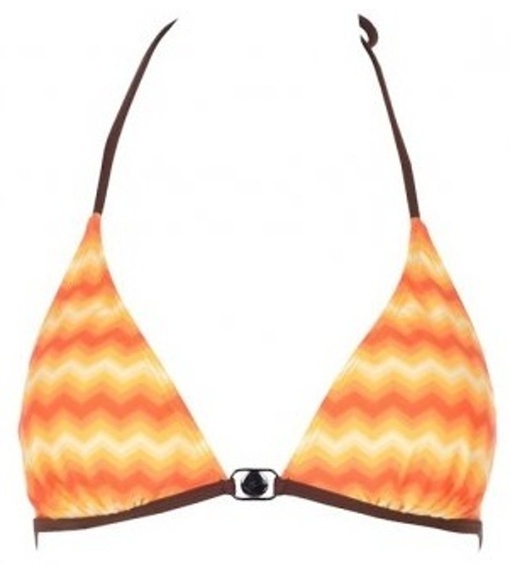 Príjemný plavkový materiál s rýchloschnúcimi vlastnosťami. Podprsenka má trojuholníčkové košíčky s vyberateľnými vypchávkami, bez všitých kostíc.